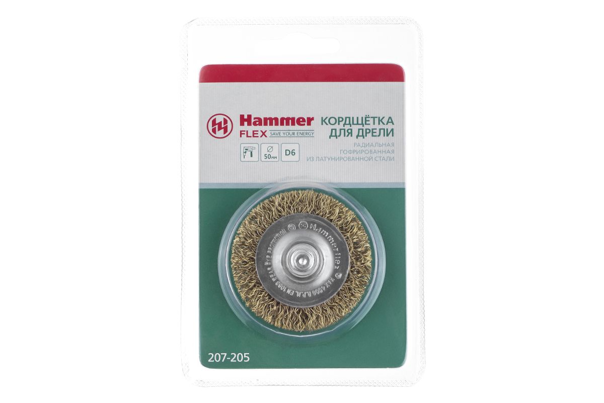 Кордщетка Hammer Flex 207-205 50мм d6 радиальная гофрированная мягкая, с хвостовиком