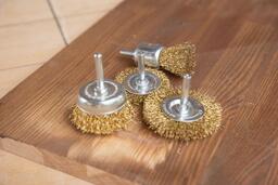 — Латунное покрытие щетины и жесткая фиксация на стальной основе — кордщетка прослужит дольше.