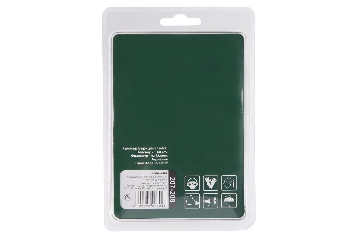 Кордщетка Hammer Flex 207-208 75мм d6 радиальная витая жесткая, с хвостовиком