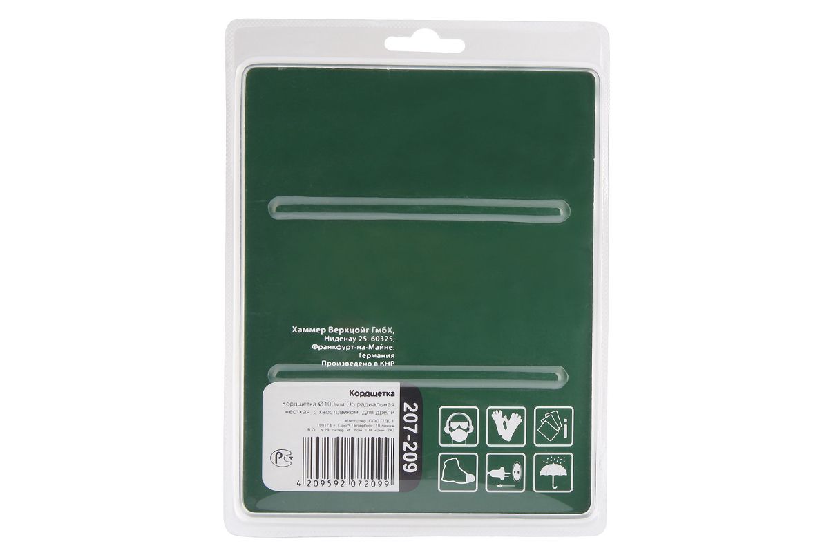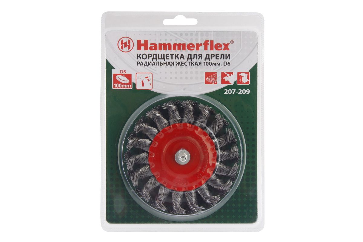 Кордщетка Hammer Flex 207-209 100мм d6 радиальная витая жесткая, с хвостовиком