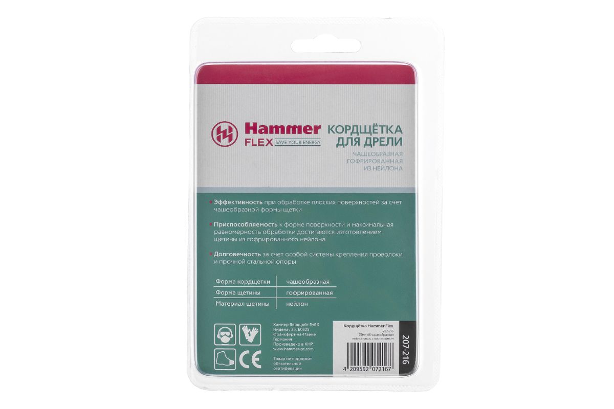 Кордщетка Hammer Flex 207-216 75мм d6 чашеобразная нейлоновая, с хвостовиком