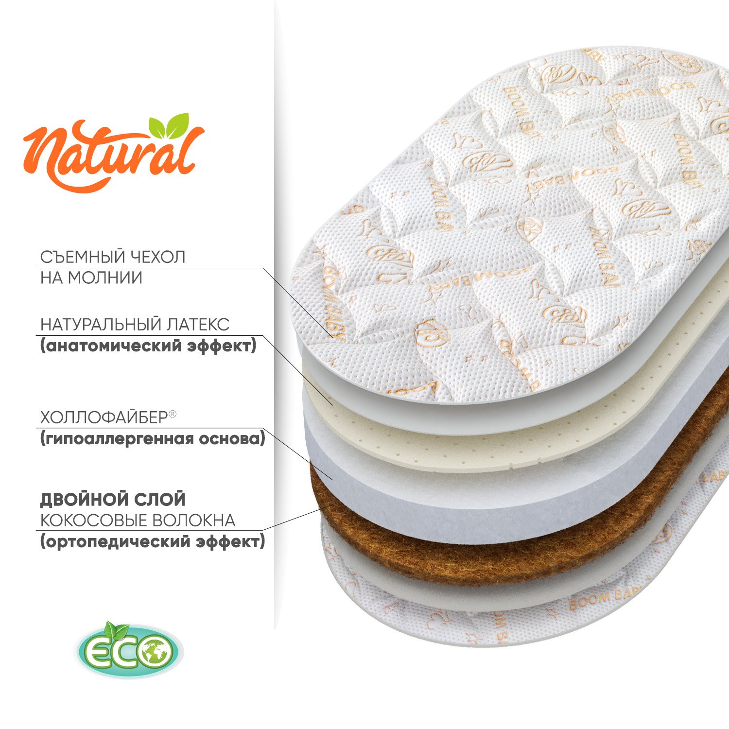 Матрас BOOM BABY NB Oval Lux 125х75 см для овальной кроватки NB-oval/1ст