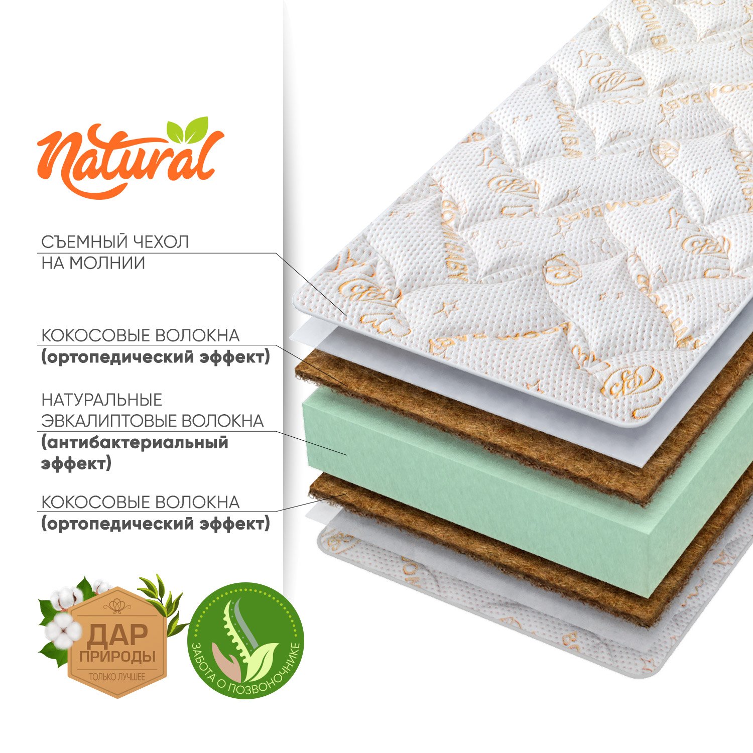 Матрас BOOM BABY для детской кроватки NB Eco Sleep 120х60 см NВ-14/Cт