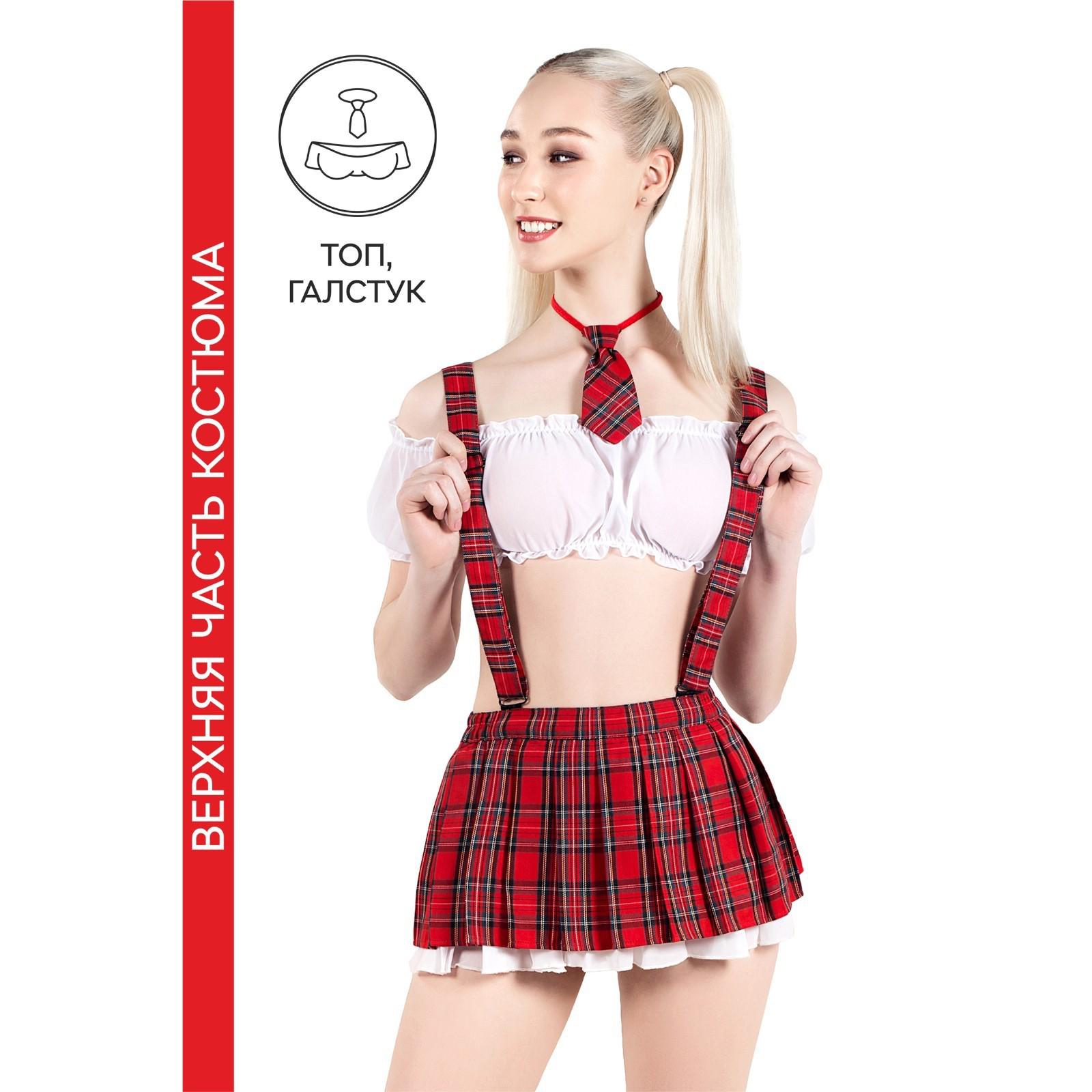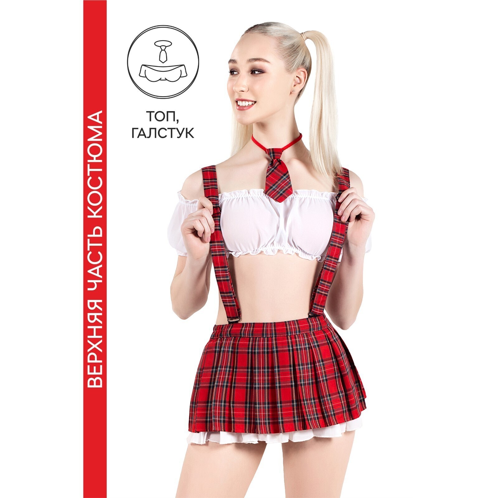 Верхняя часть костюма «Американская школьница», Pecado BDSM, топ, галстук, бело-красная, 40 952381