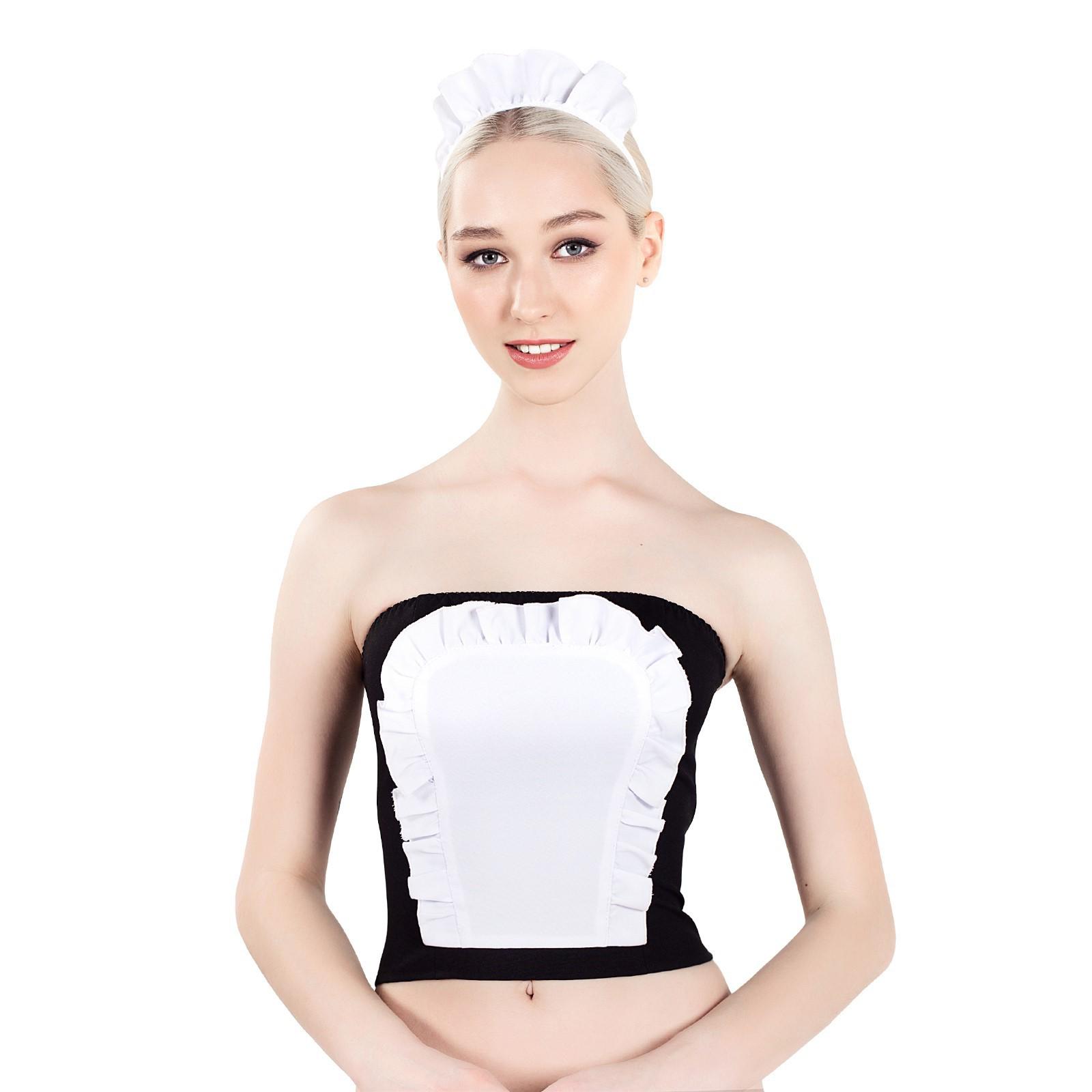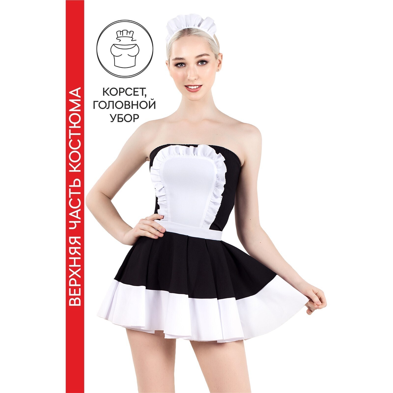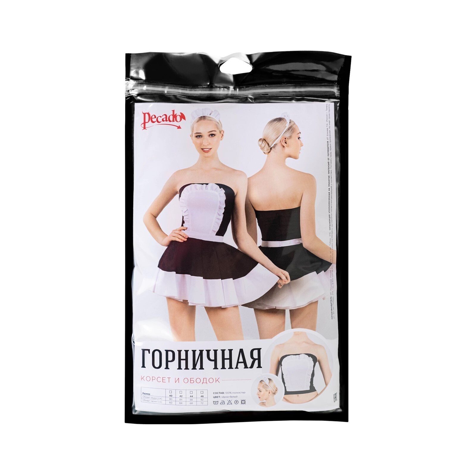 Верхняя часть костюма «Горничная», Pecado BDSM, корсет, головной убор, чёрно-белая, 40
