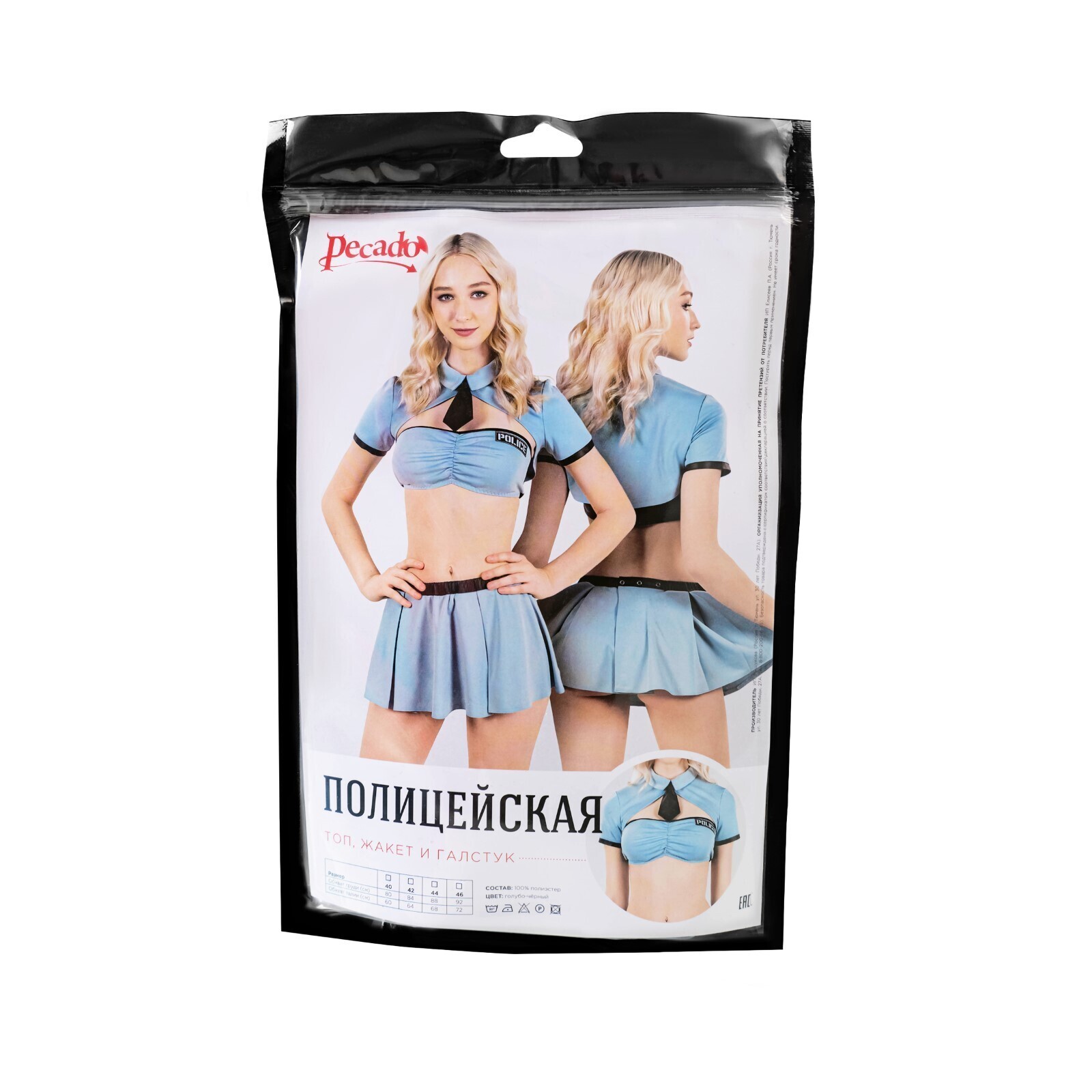 Верхняя часть костюма «Полицейская», Pecado BDSM, топ, жакет, галстук, голубой, 40