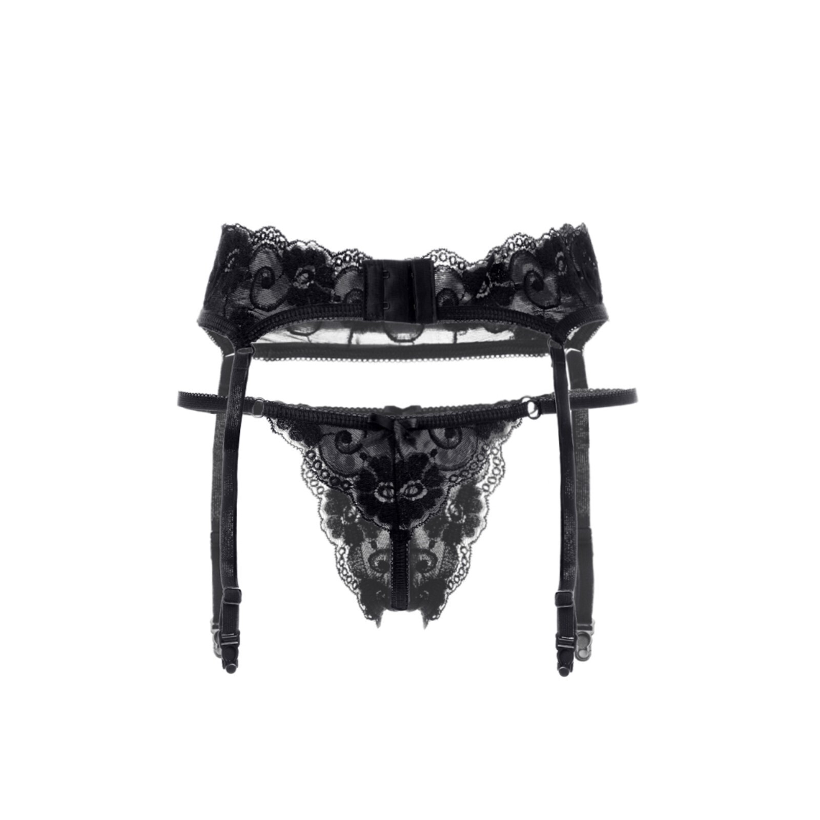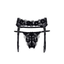 Комплект Erolanta Tatyana: пояс для чулок и стринги, чёрный, 42-44