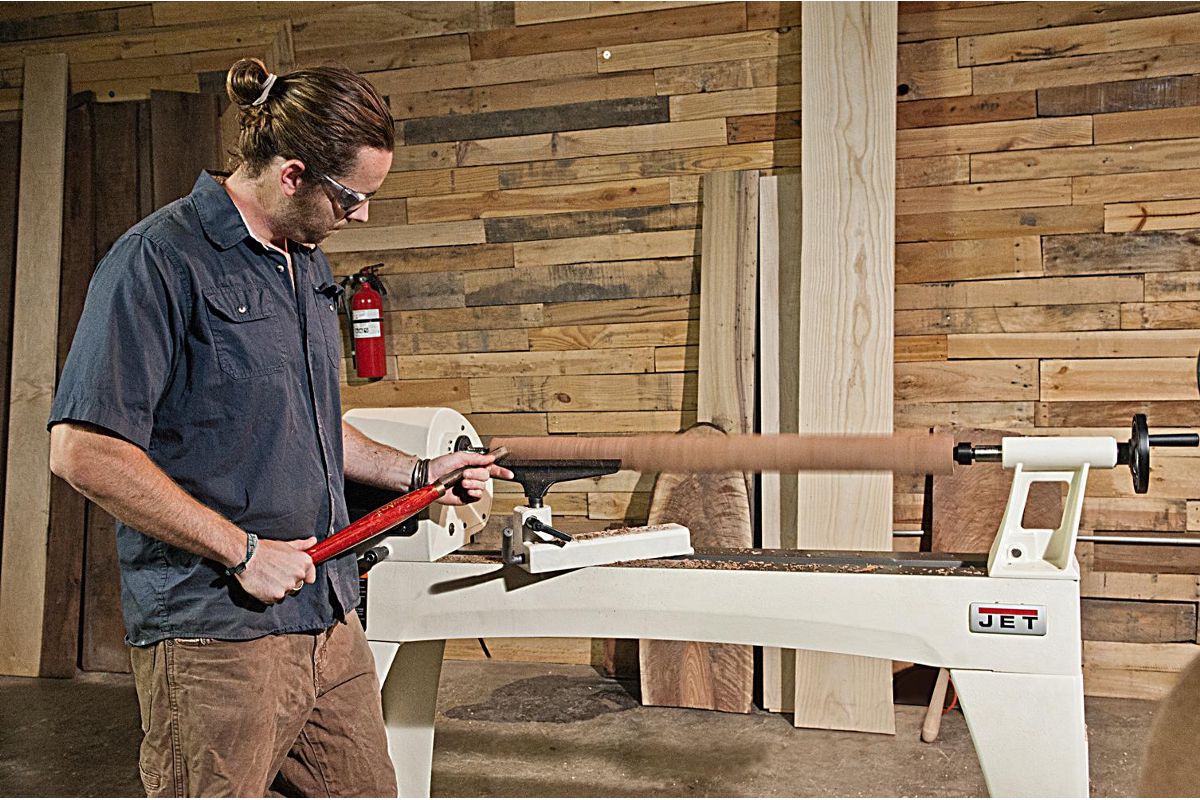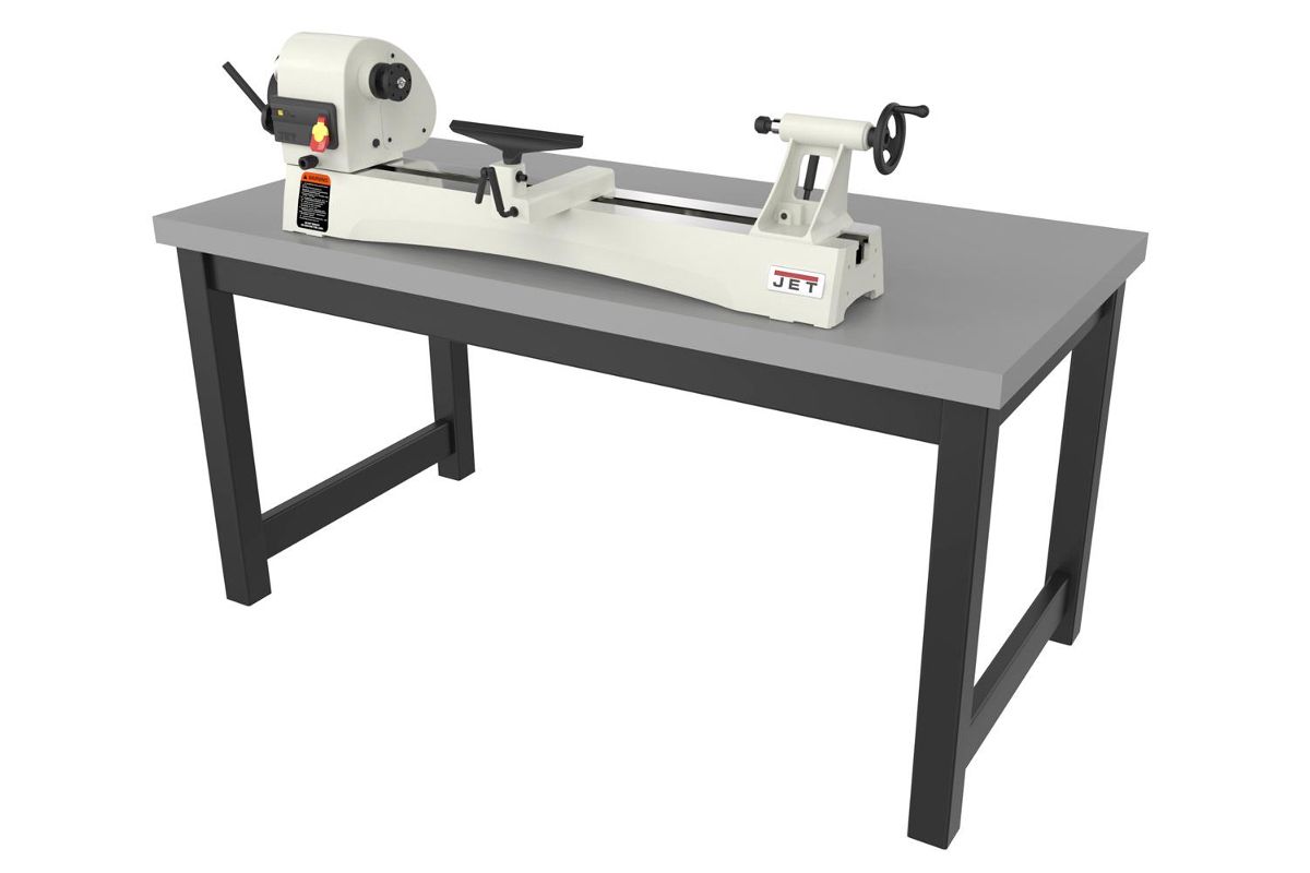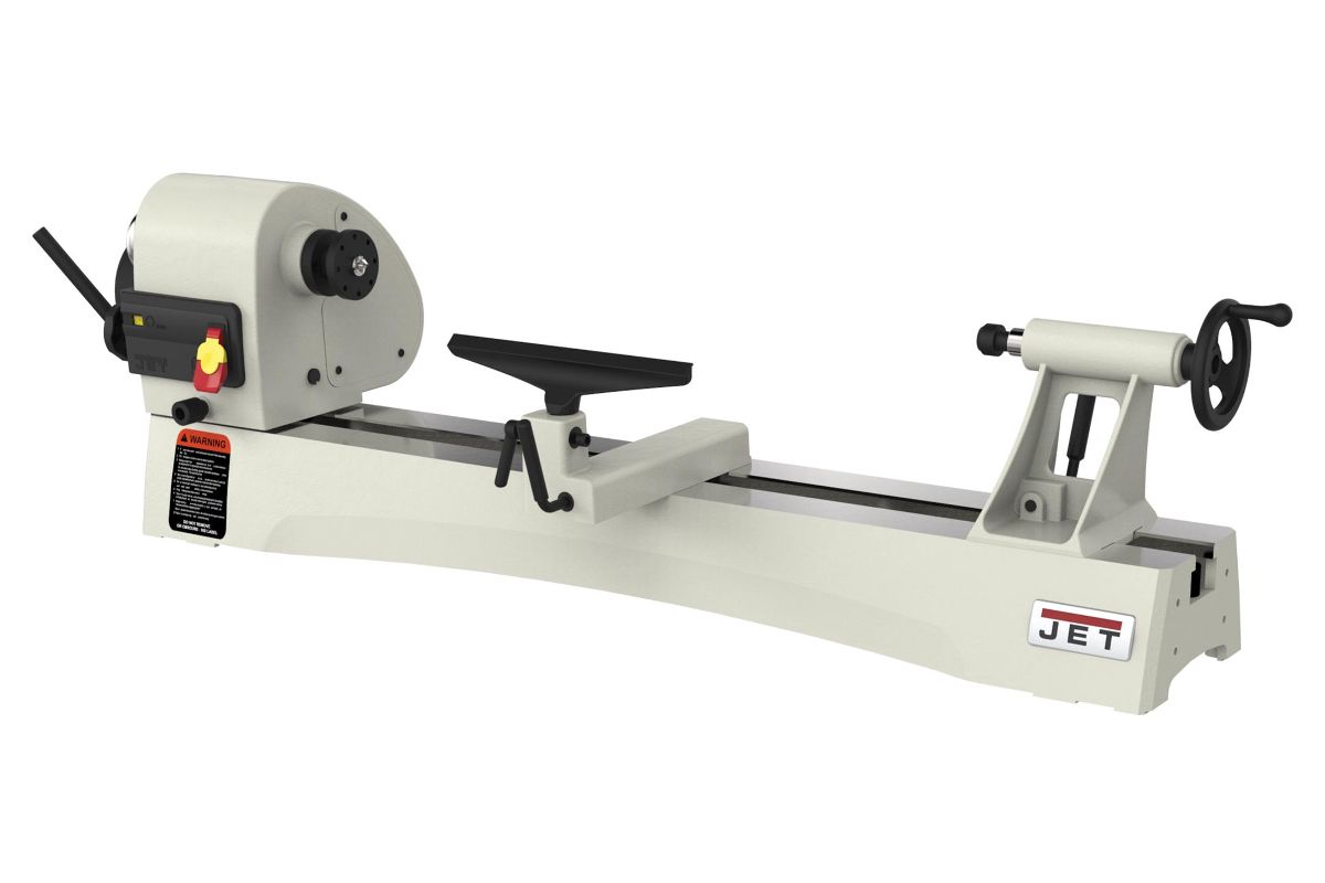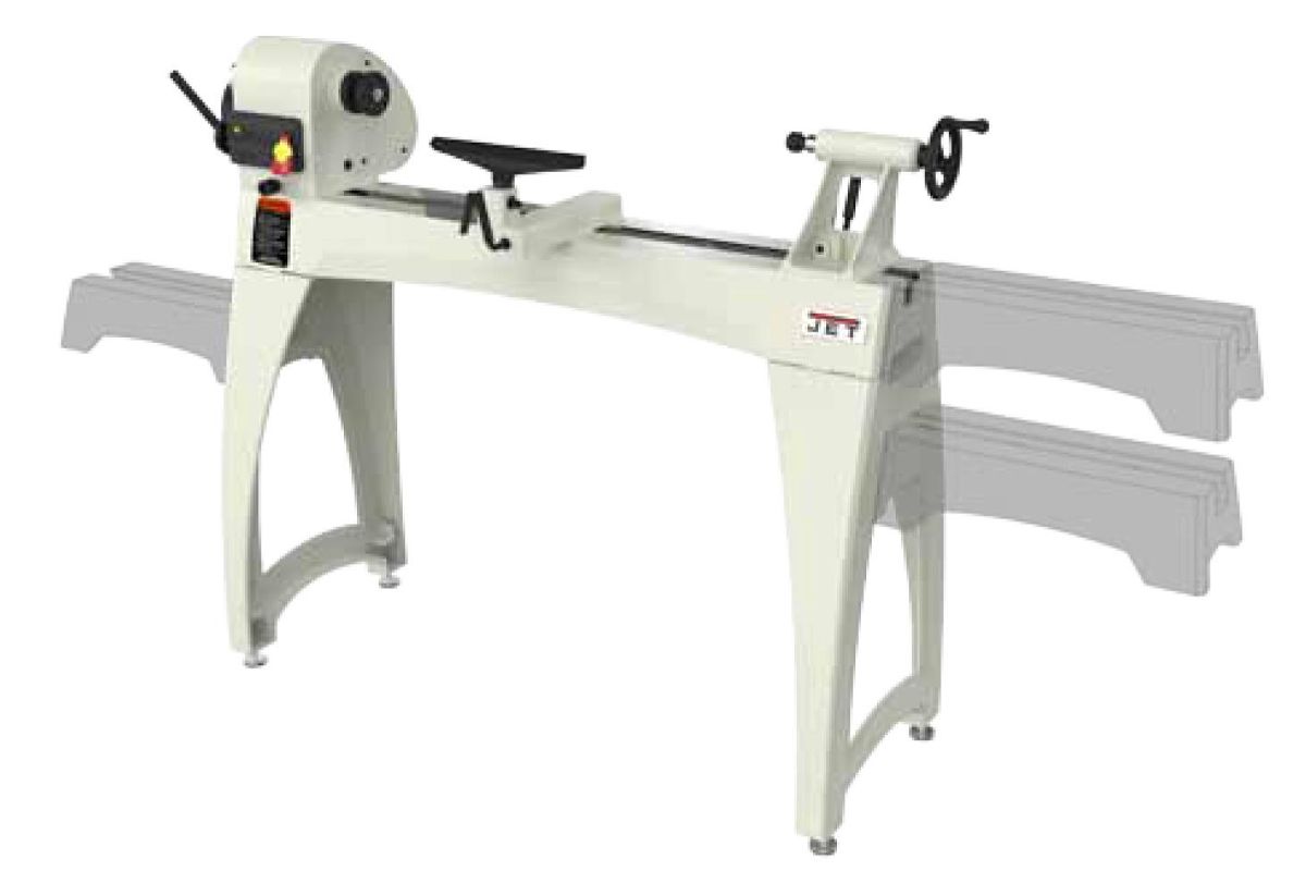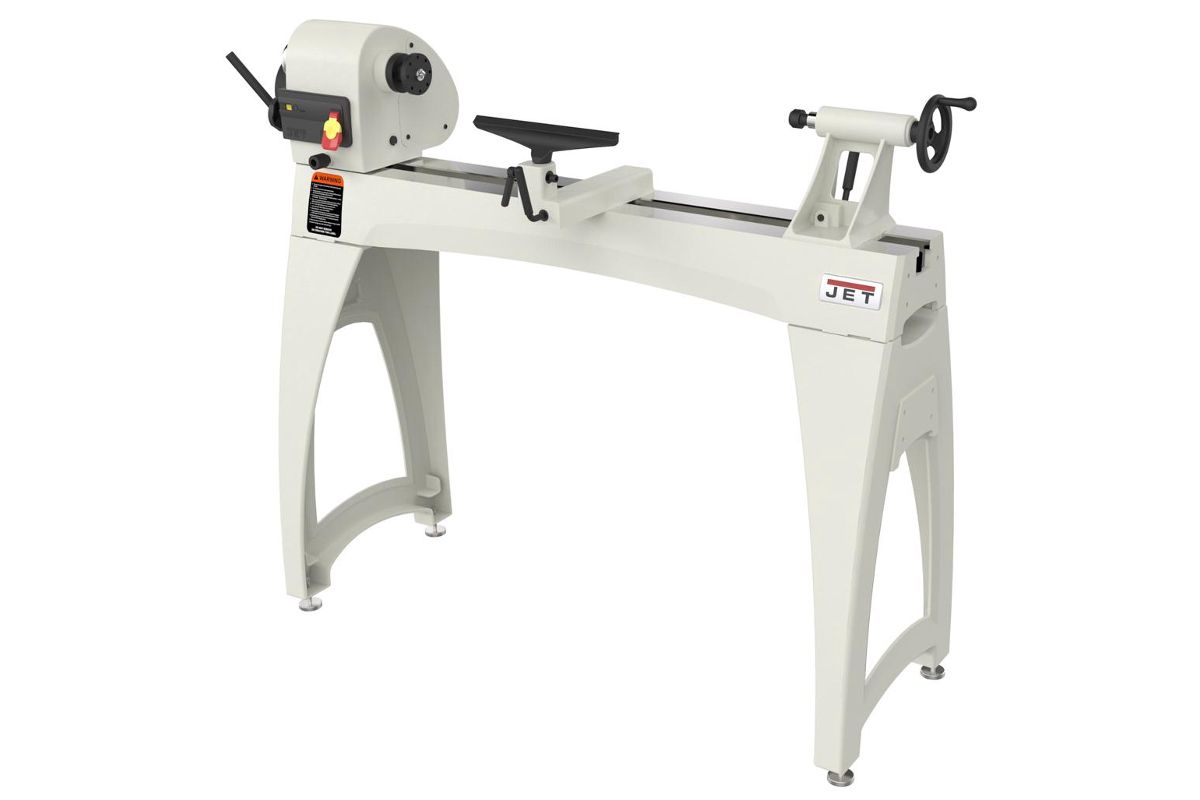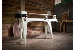 Jet JWL-1440VS – массивный и устойчивый токарный станок с большой зоной обработки, вариаторным приводом шпинделя и мощным асинхронным двигателем, рассчитанным на продолжительную работу без перерывов на охлаждение. Модель является развитием хорошо себя зарекомендовавшего станка JWL-1442, популярного как у профессионалов, так и у любителей работы с деревом. Особенность новинки – плавное, бесступенчатое изменение скорости, шпиндель с резьбой М33х3,5 и настольное исполнение (массивные чугунные ноги для напольной установки предлагаются за отдельную плату). В качестве опции также поставляется и удлинение станины, причем монтировать его можно на двух уровнях, что позволяет работать с заготовками увеличенного диаметра (подразумевается их крепление без использования задней бабки). Конструкция подручника также адаптирована для такой работы.