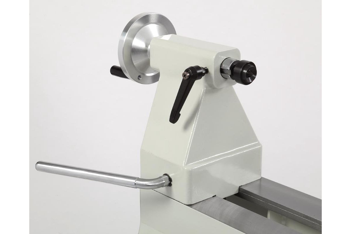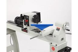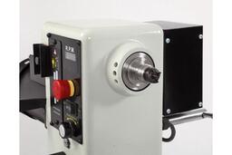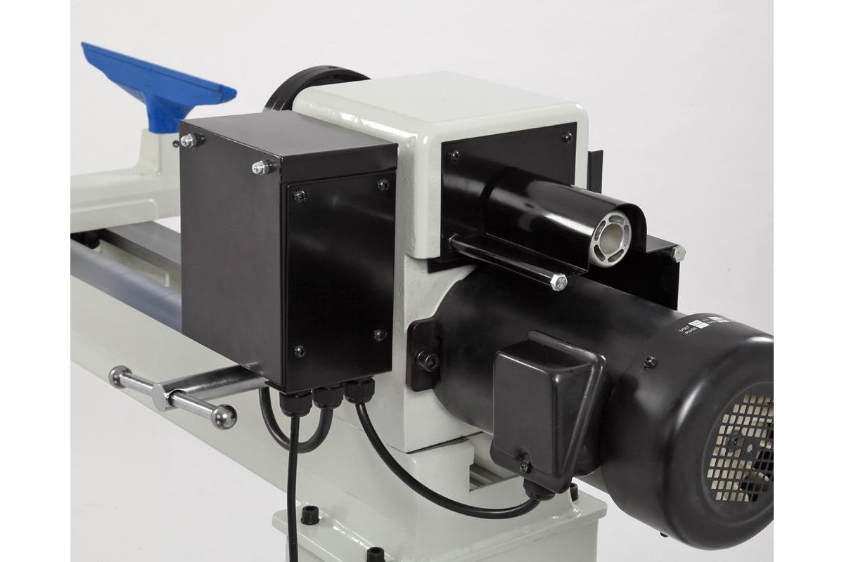 Заготовка получает вращение от шпинделя, скорость регулируется с помощью частотного преобразователя и имеет два диапазона: