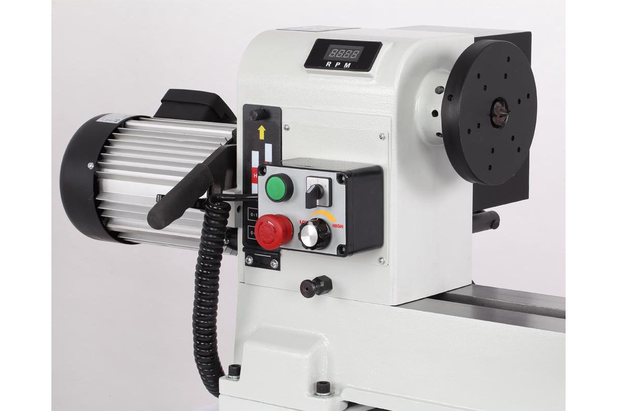 Модель интересна тем, что при средних размерах в общей линейке она имеет достаточно интересный функционал. Двигатель мощный асинхронный – 1500 Вт. Два диапазона скоростей: низкий - от 0 до 1350 об./мин., и высокий – от 0 до 3000 об./мин. Скорость регулируется плавно с помощью частотного преобразователя. Отличительная особенность – выносной пульт управления с магнитной фиксацией.