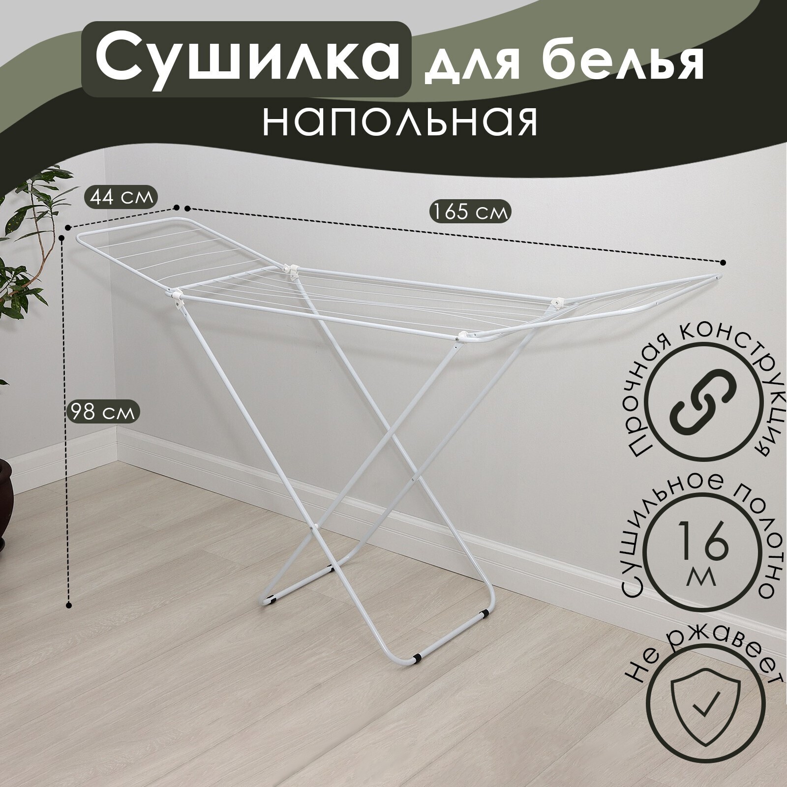 Сушилка для белья напольная складная Доляна, рабочая длина 16 м
