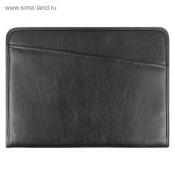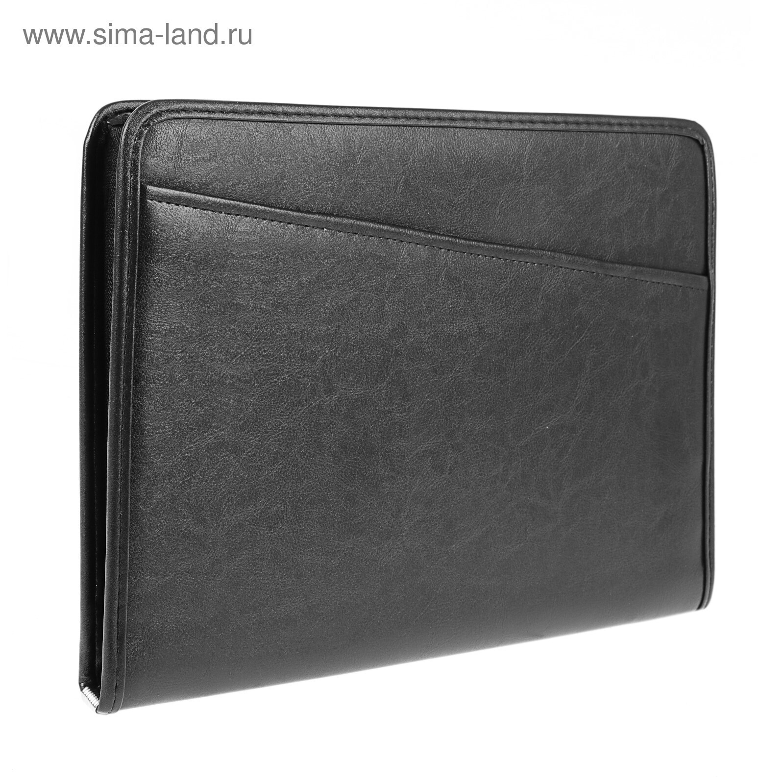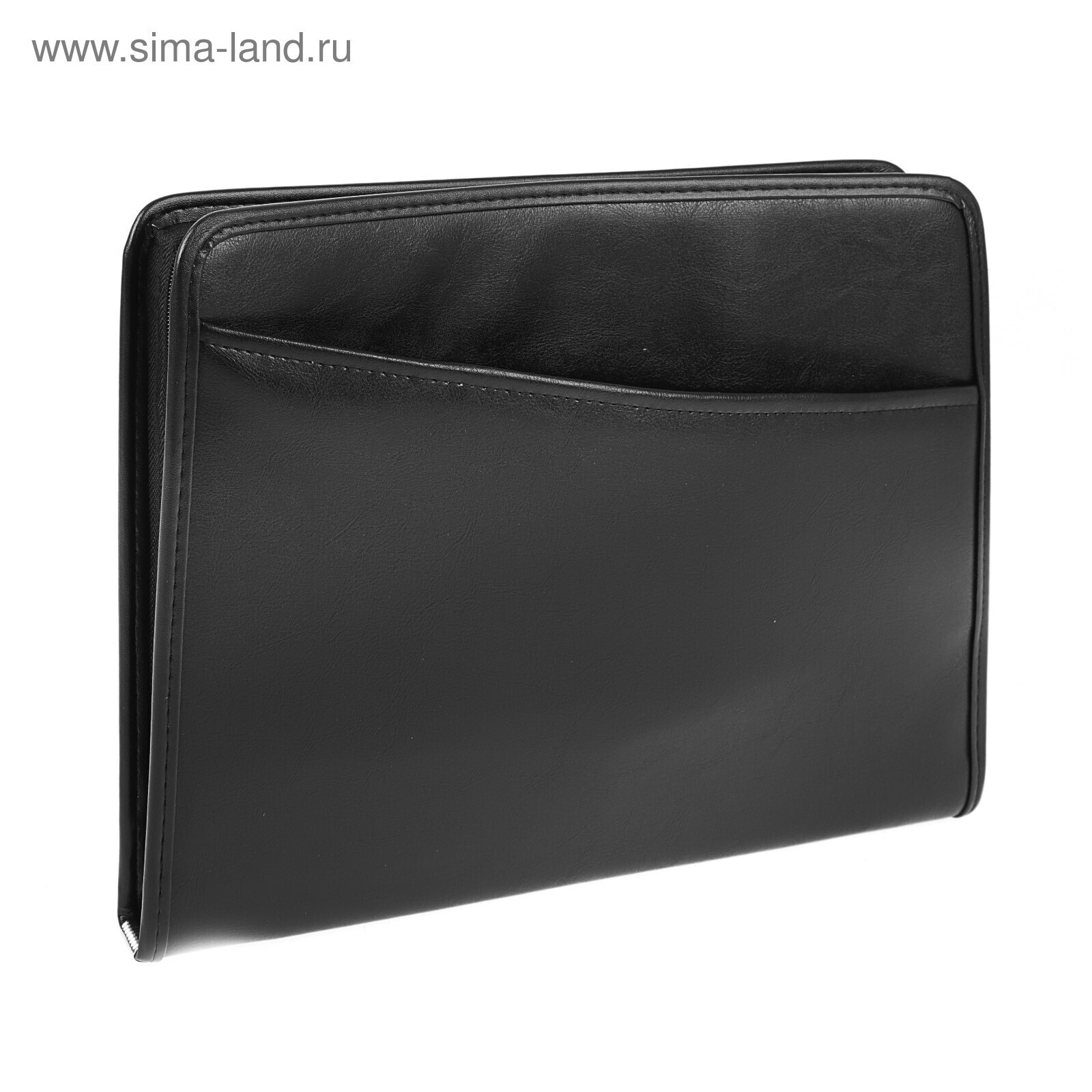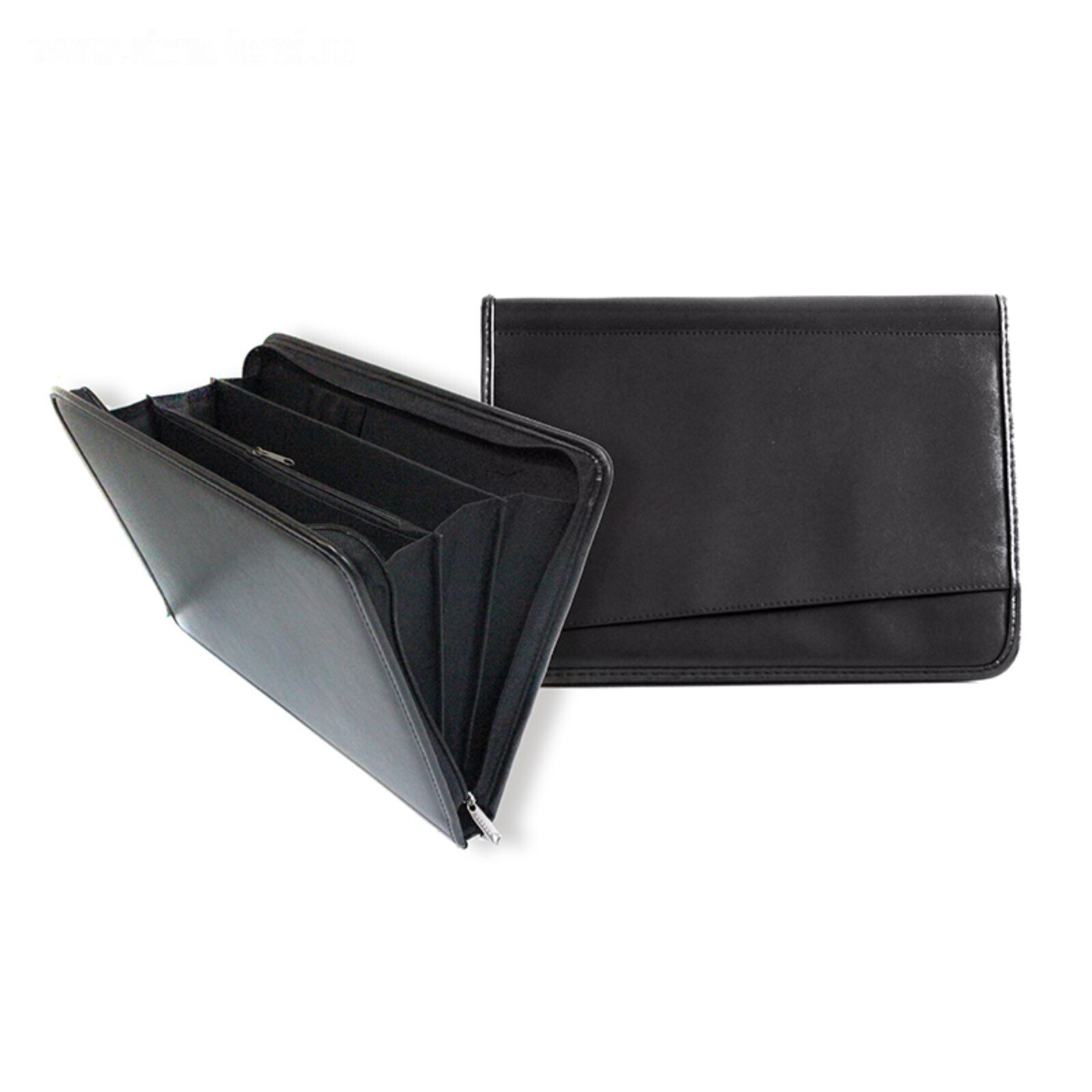 Папка деловая, искусственная кожа, 360х260х30 мм, чёрная, с карманом на молнии