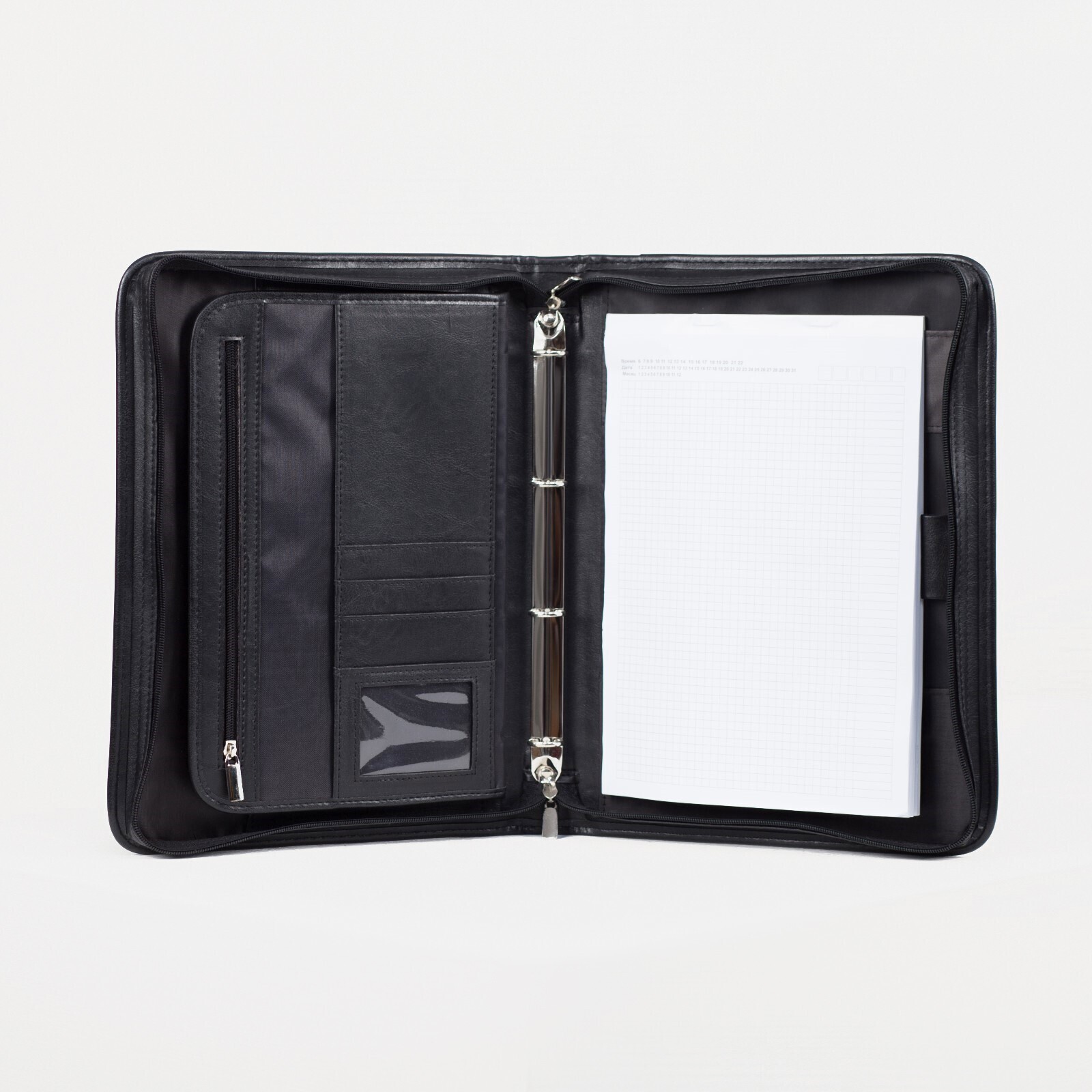 Папка деловая на молнии, наружный карман, цвет чёрный