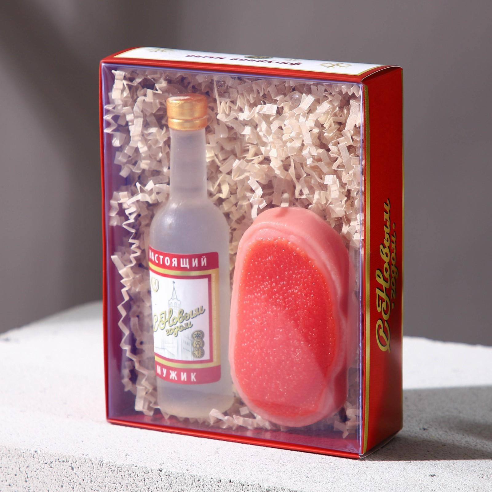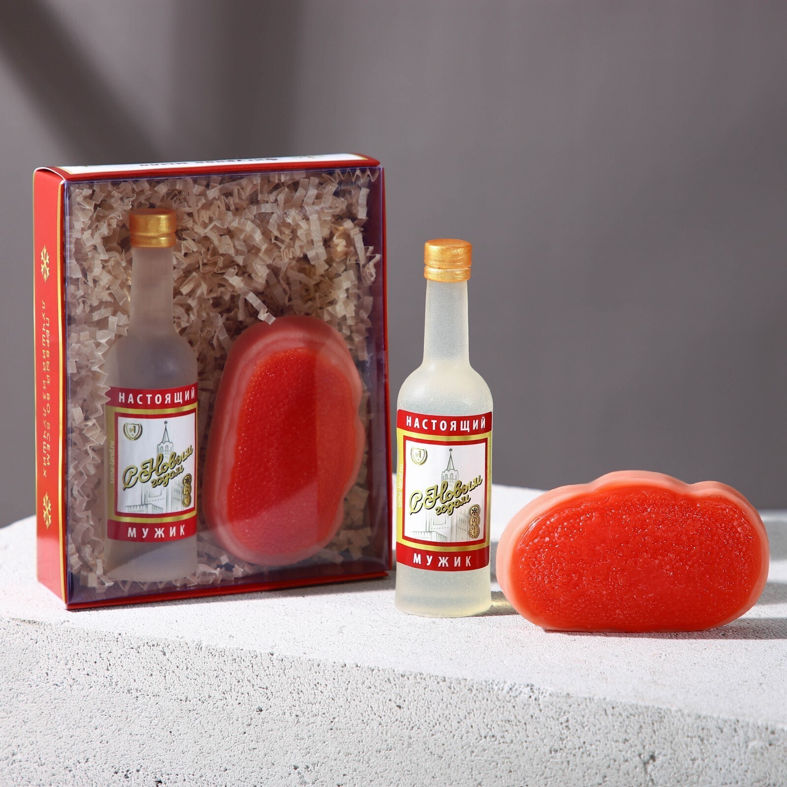 Набор фигурного мыла ручной работы "С Новым годом!": мыло в форме водки 75 г, бутерброд 75 г