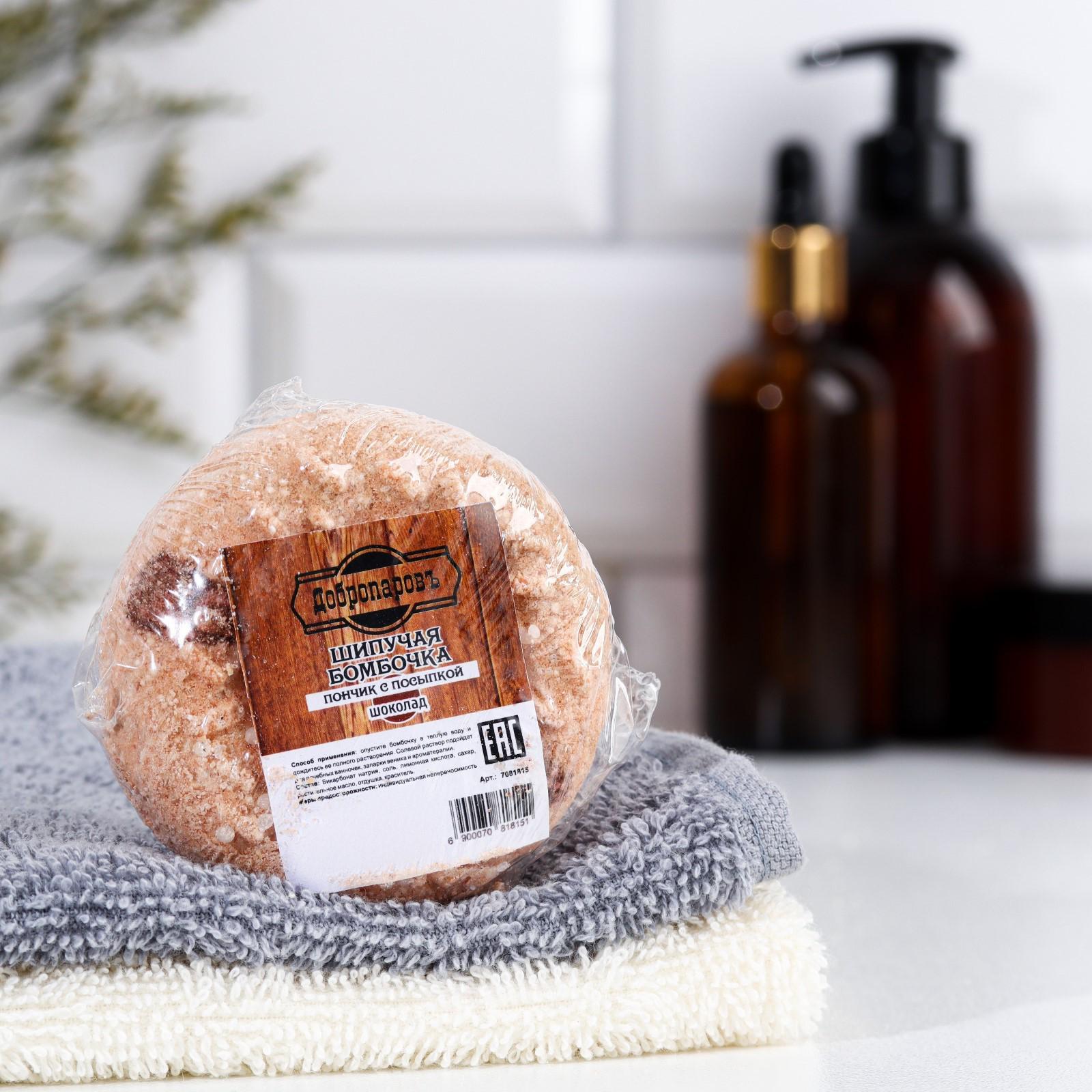 Шипучая бомбочка "Пончик", коричнево-белый, шоколад