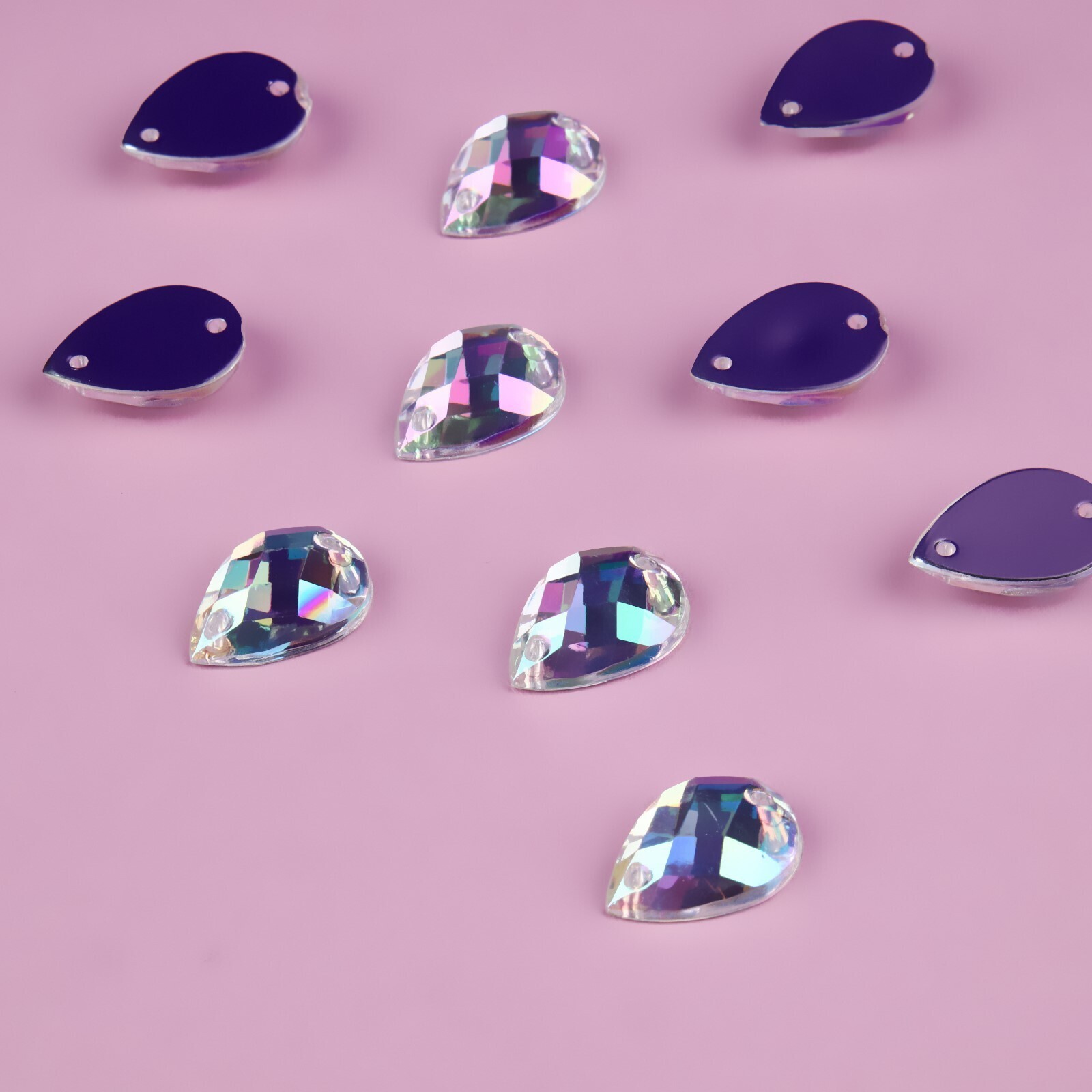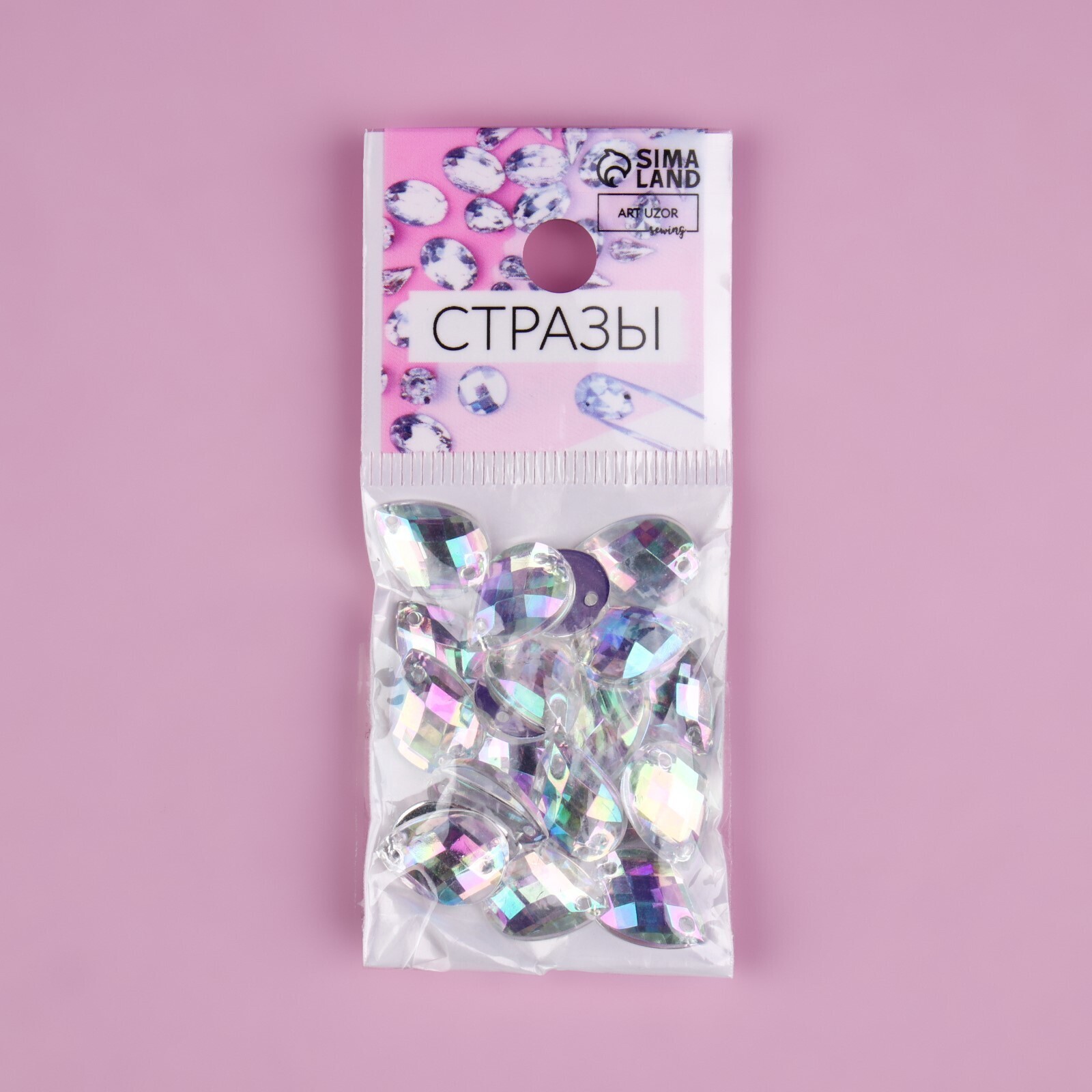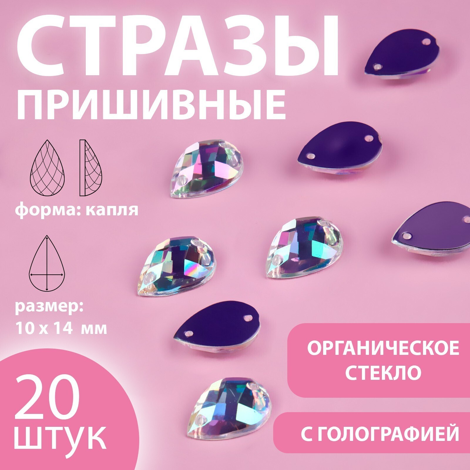 Стразы пришивные «Капля», с голографией, стеклянные, 10 × 14 мм, 20 шт