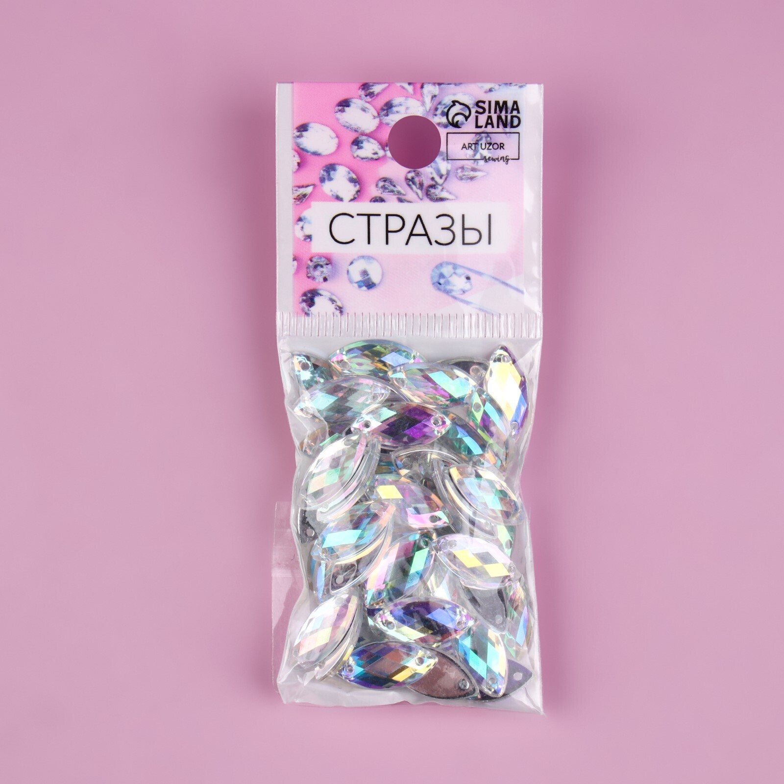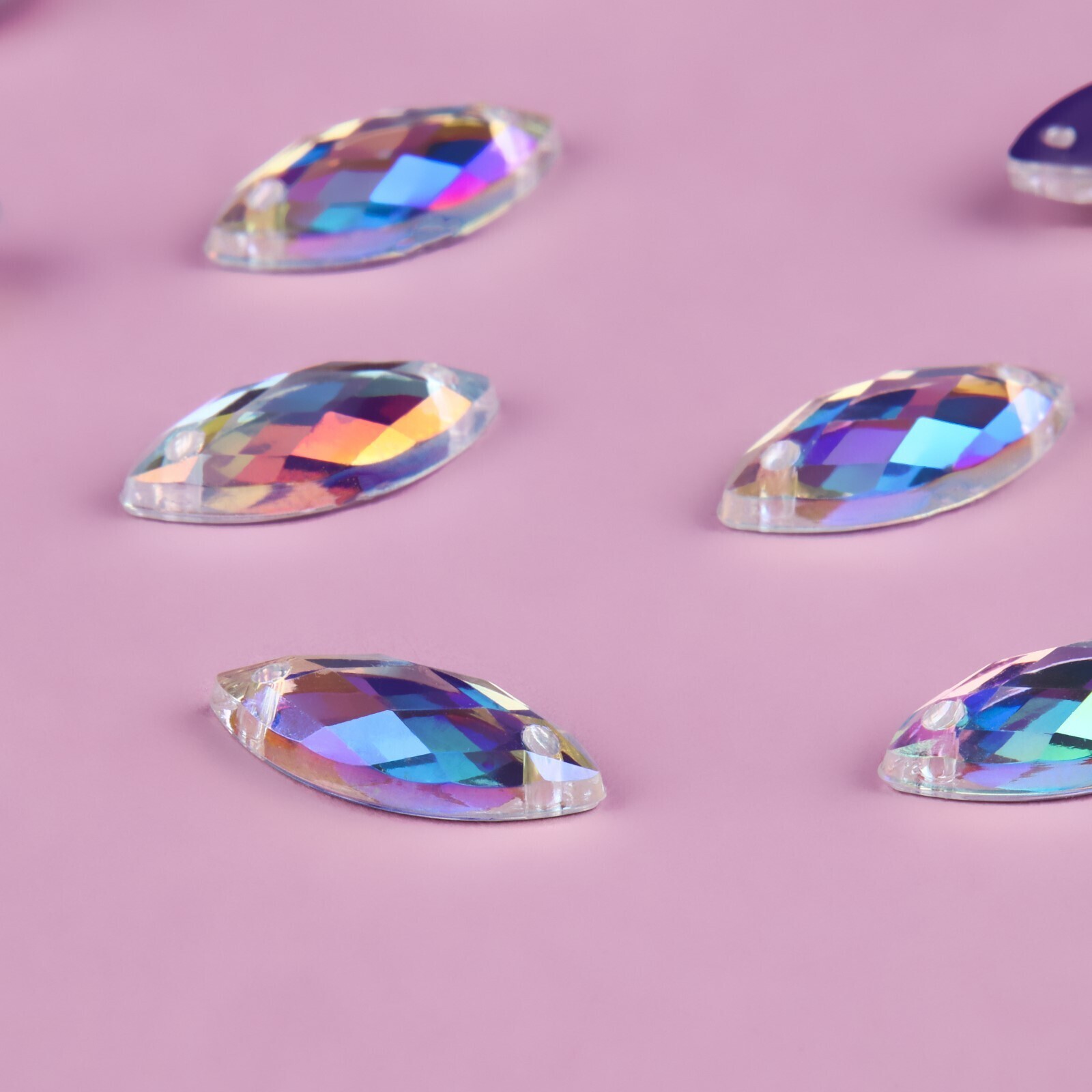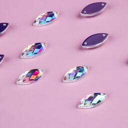 Стразы пришивные «Лепесток», с голографией, стеклянные, 7 × 15 мм, 50 шт