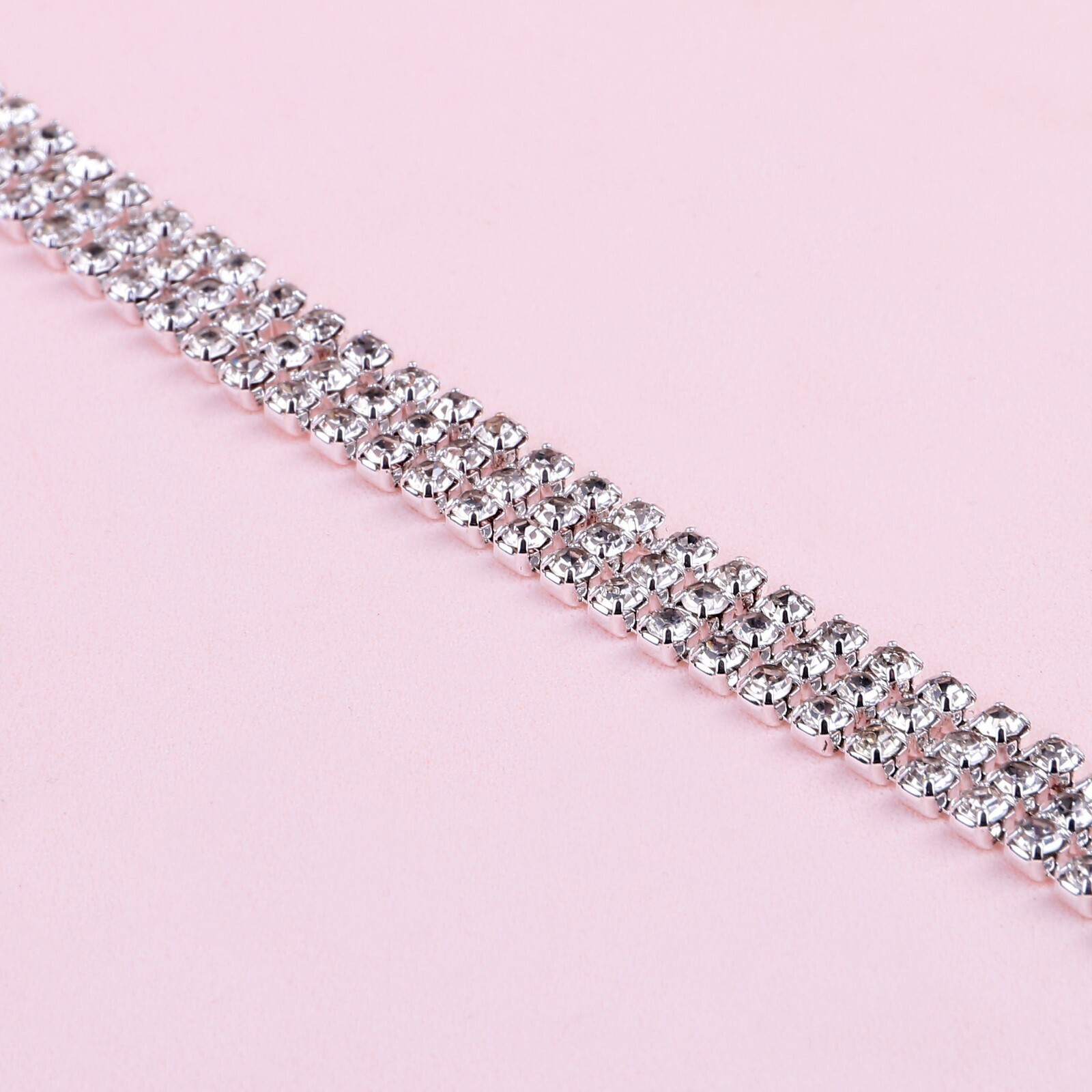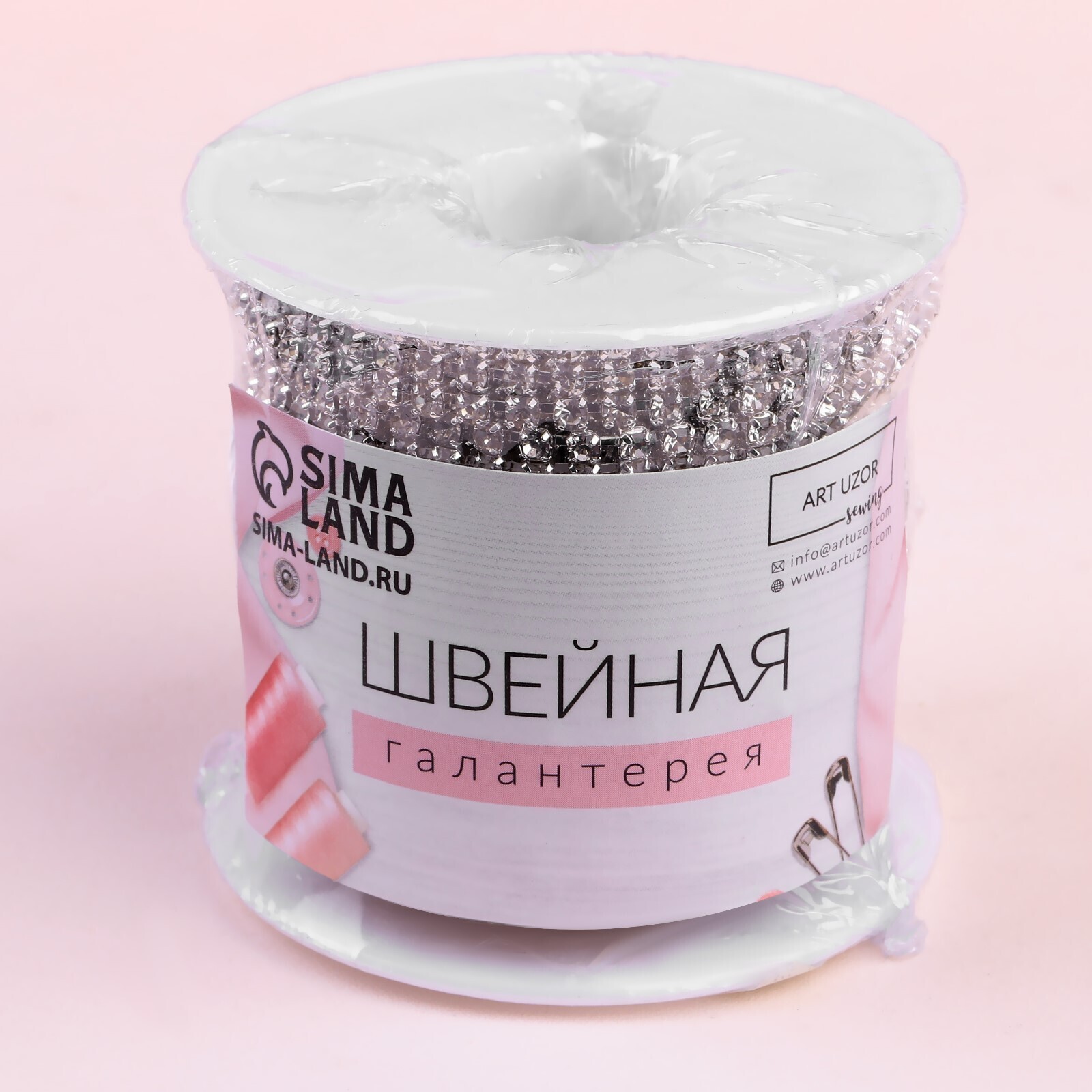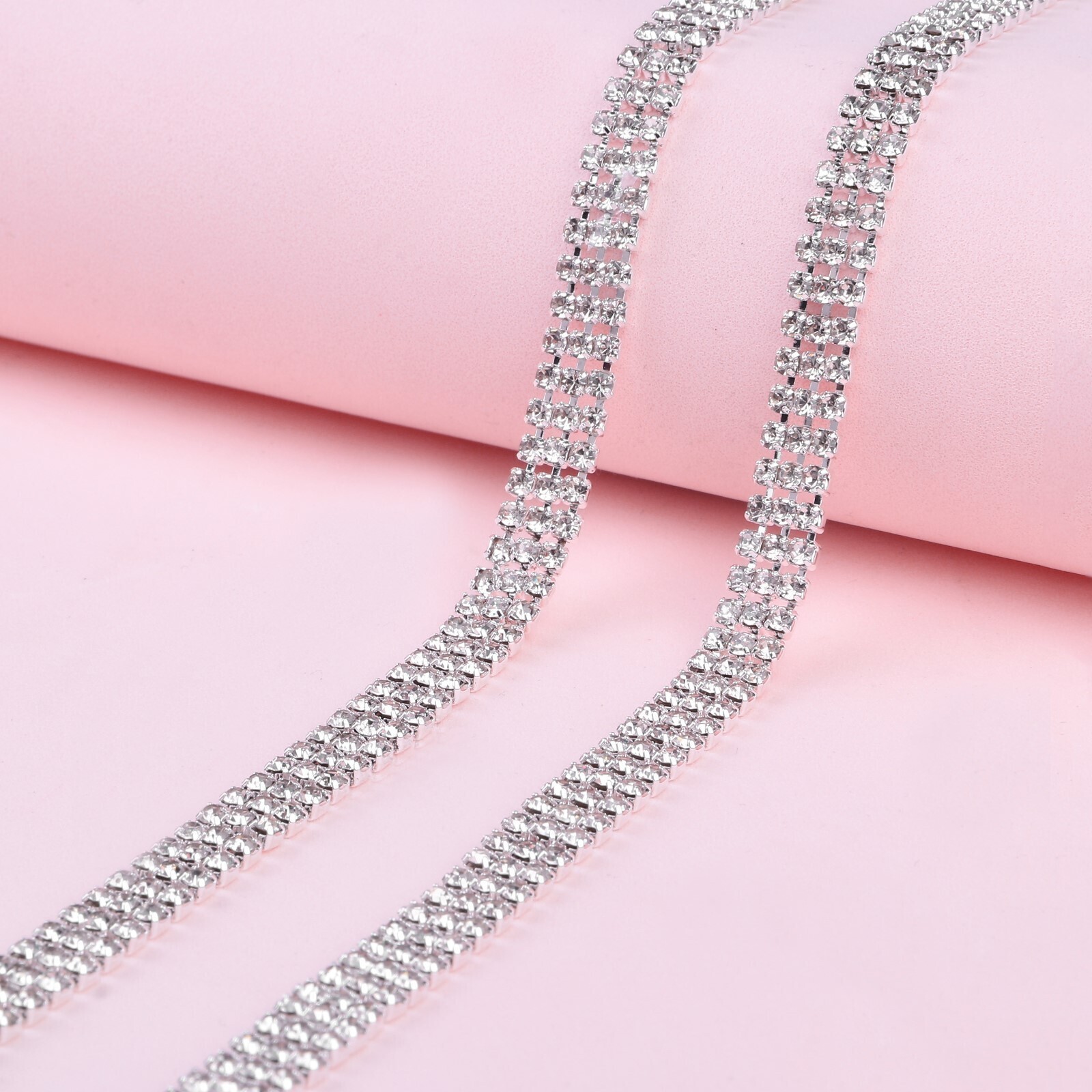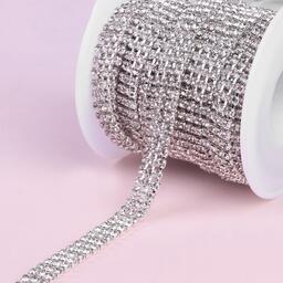 Цепь со стразами, 3 ряда, 6 мм, 9 ± 1 м, цвет серебряный