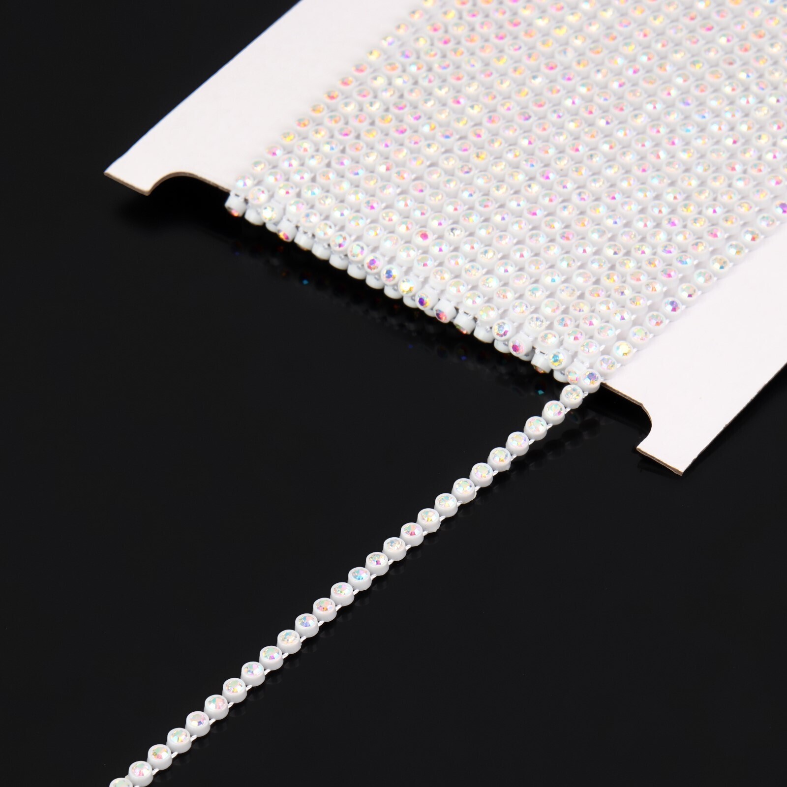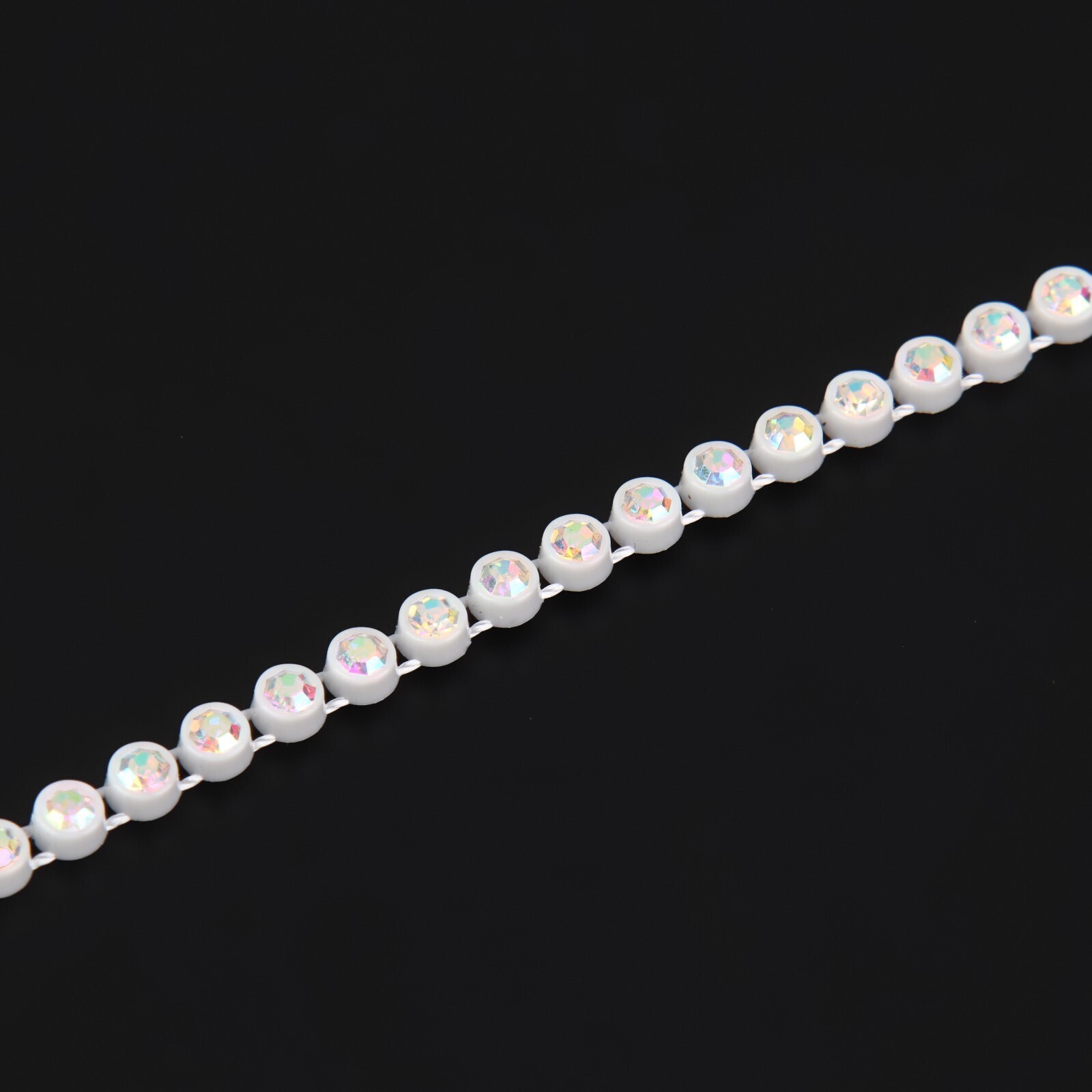Стразы на нитях, с голографией, 3 мм, 9 ± 1 м, цвет белый