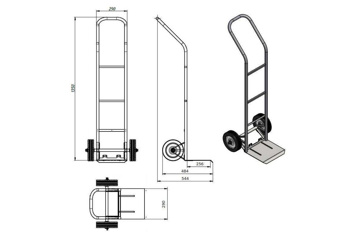 Тележка грузовая двухколесная КГ 150 колёса пневмо d 200.