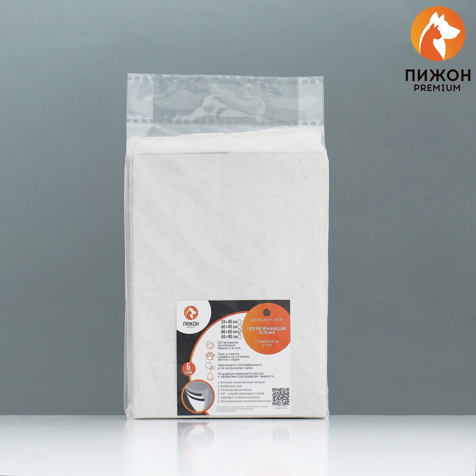 Пеленки угольные шестислойные гелевые для животных, 60 х 60 см, 10 шт