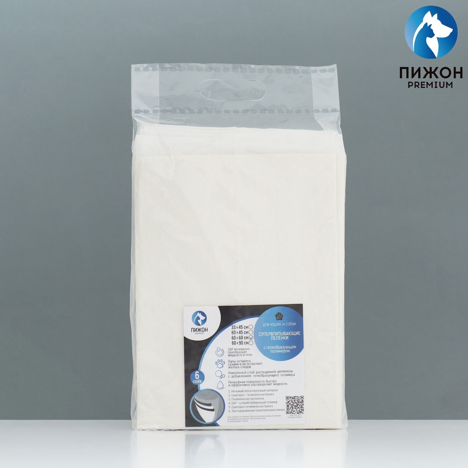 Пеленки шестислойные гелевые для животных, 60 х 60 см, 10 шт