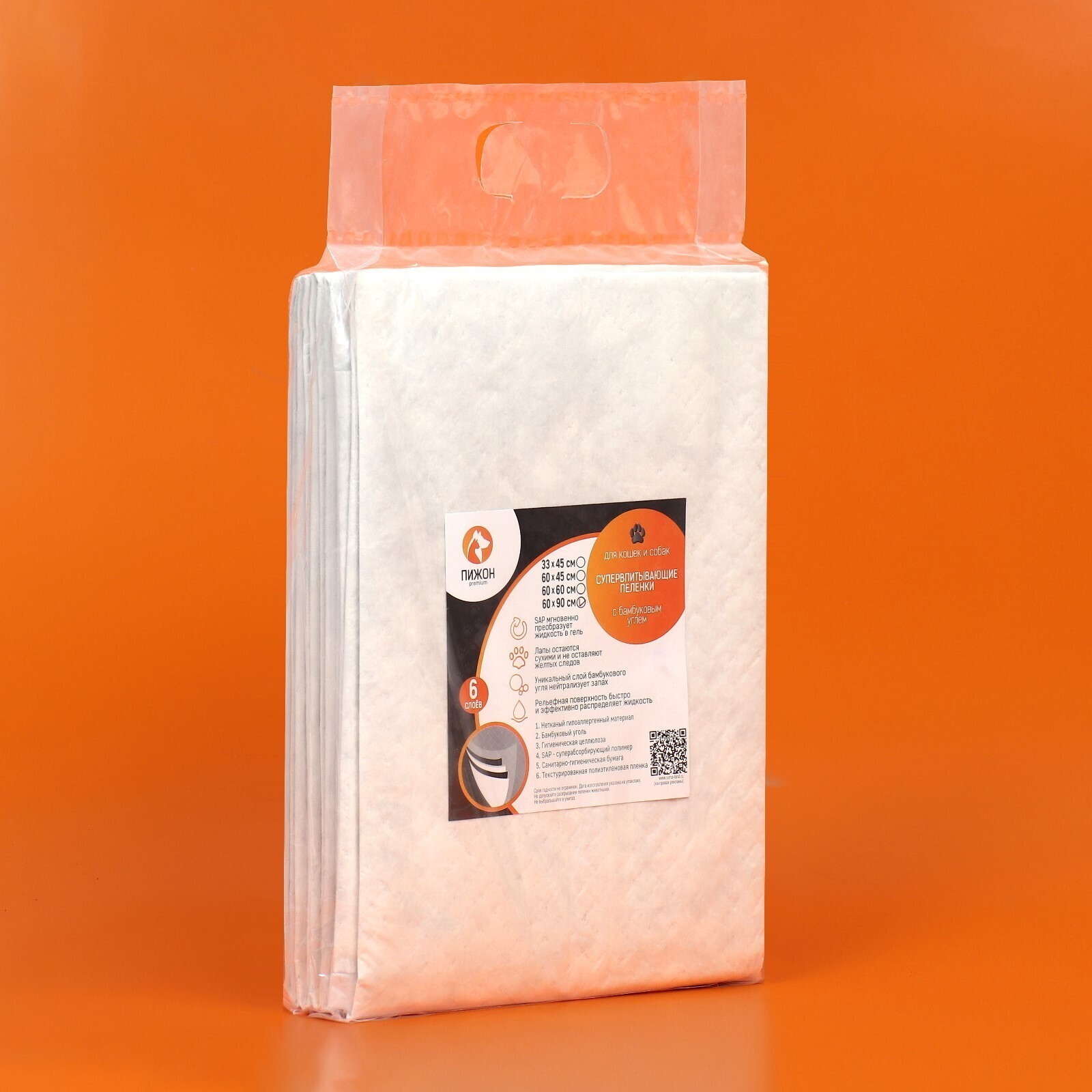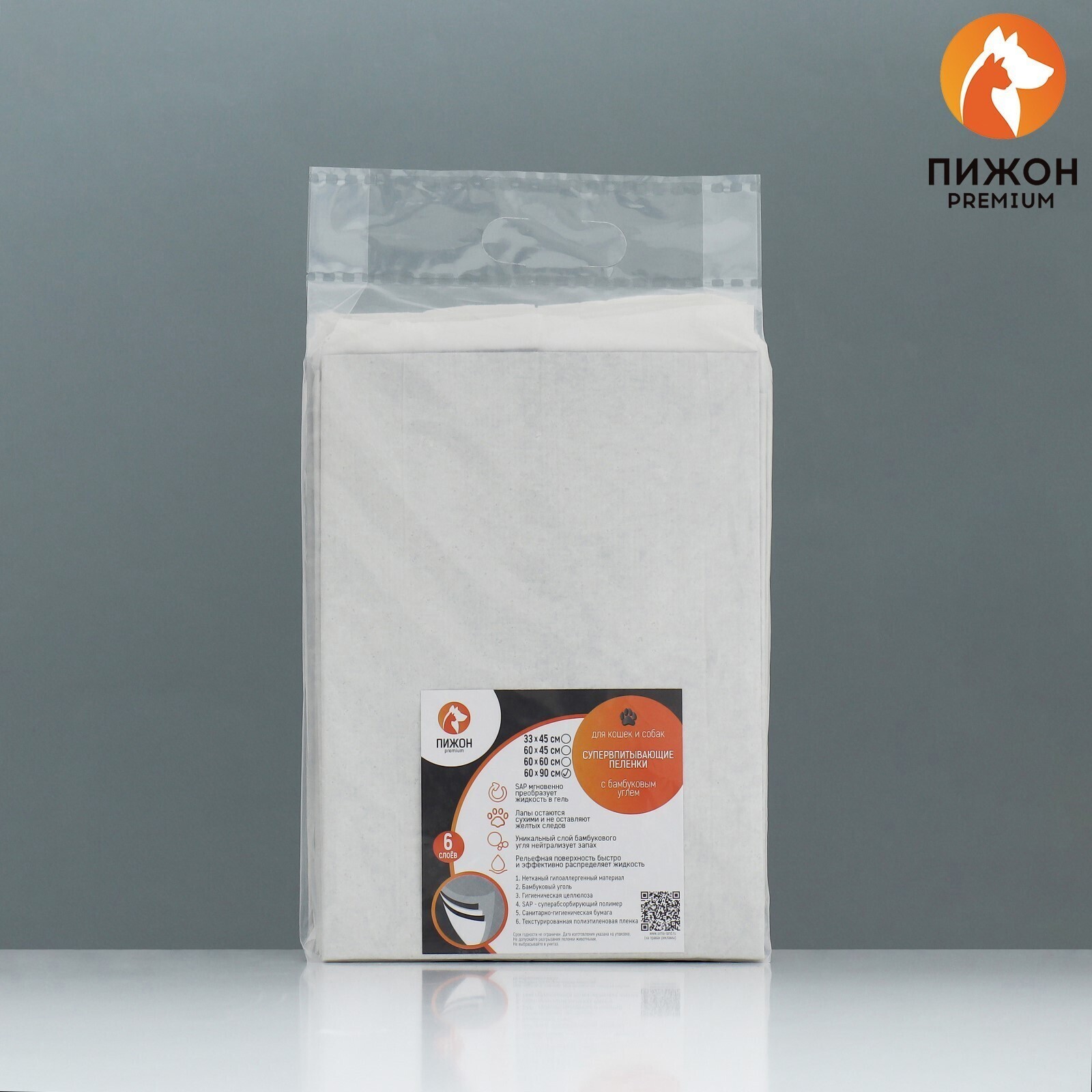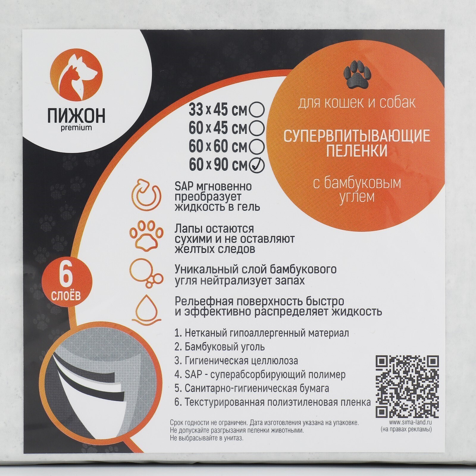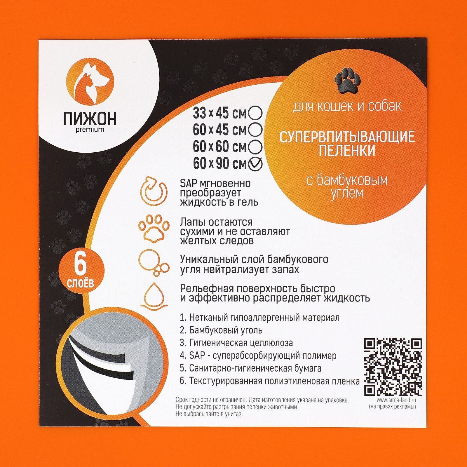 Пеленки угольные шестислойные гелевые для животных, 60 х 90 см, 5 шт
