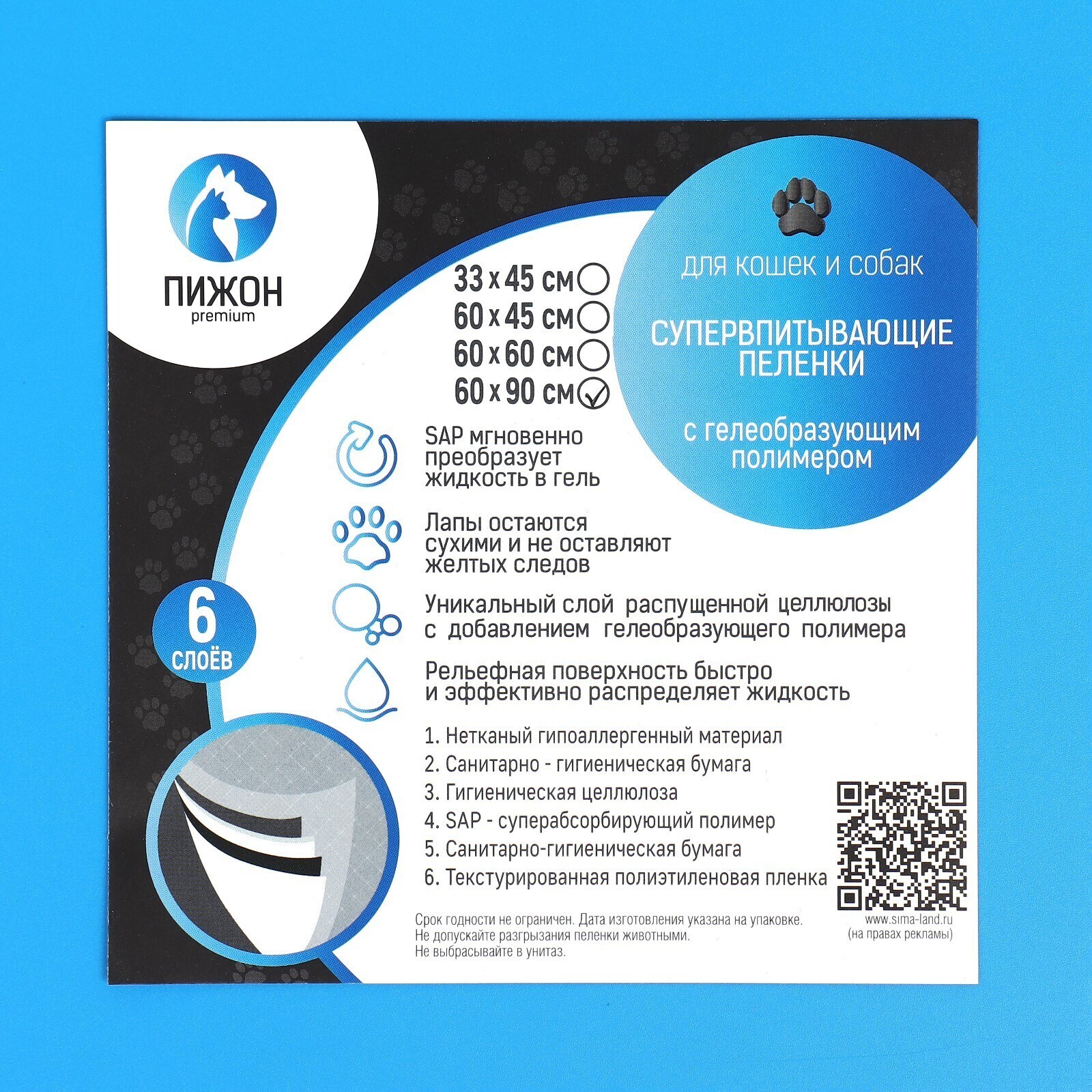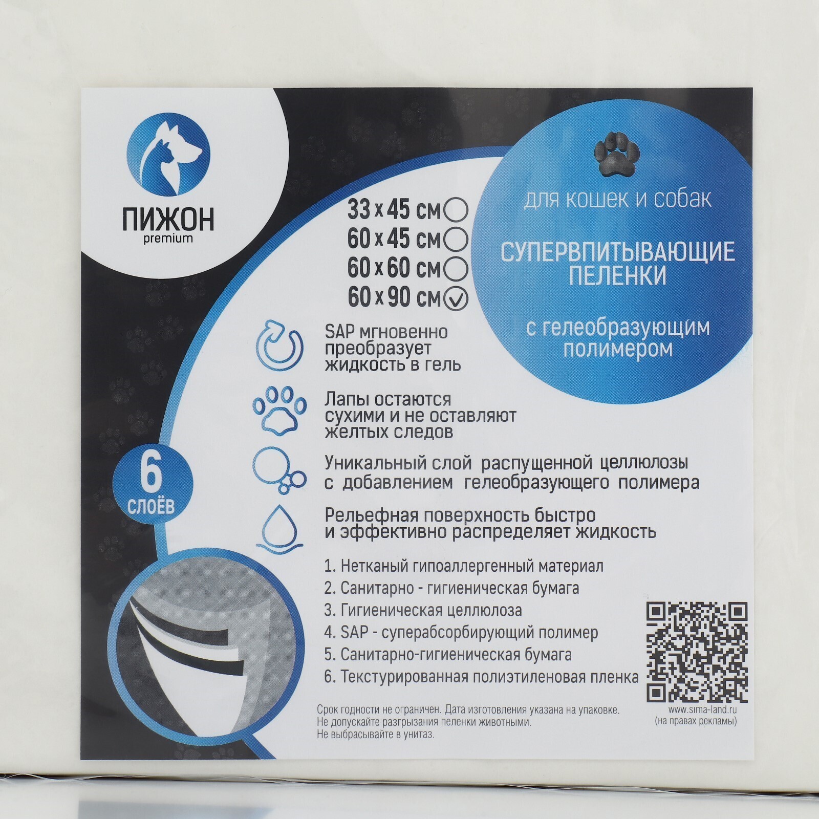 Пеленки шестислойные гелевые для животных, 60 х 90 см, 5 шт