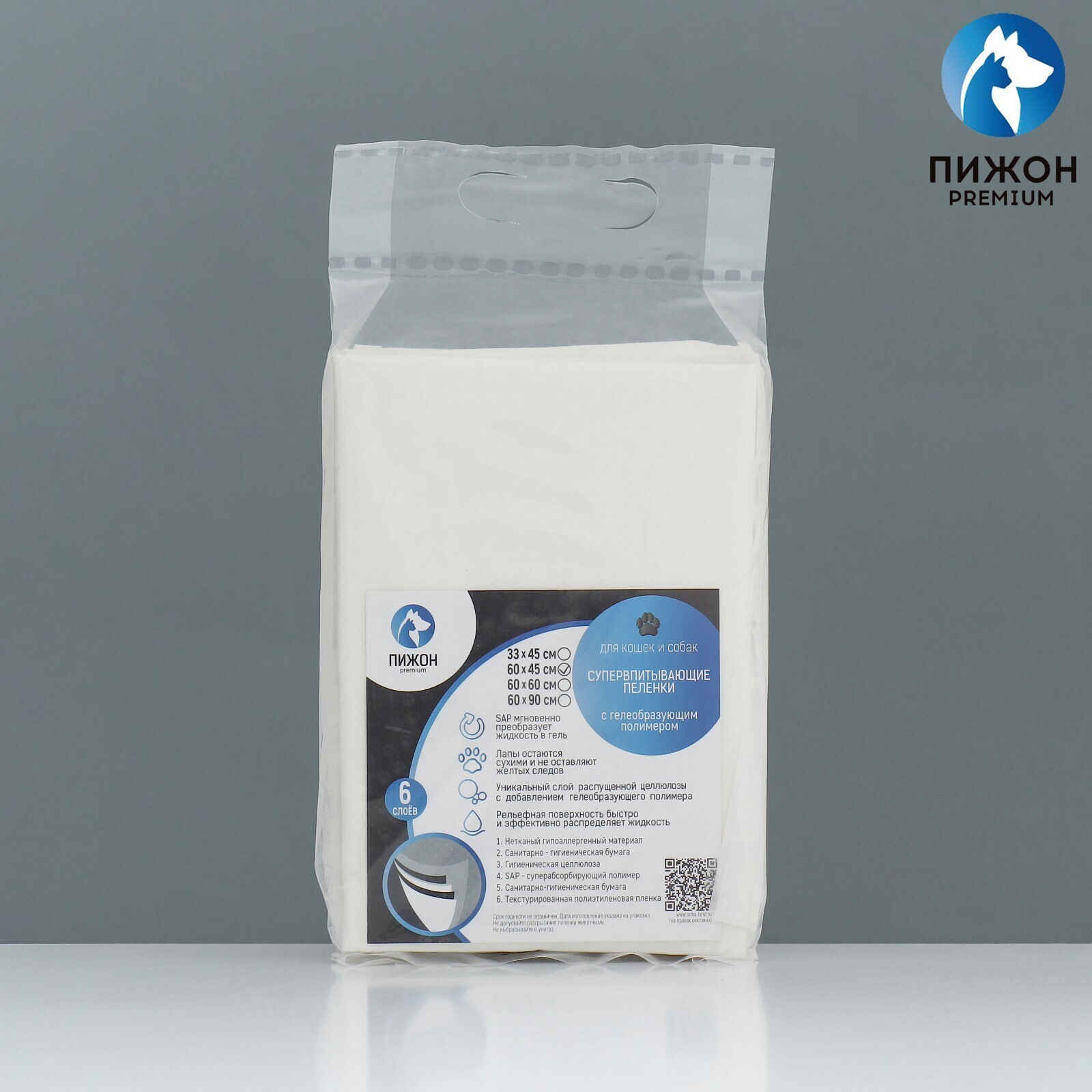 Пеленки шестислойные гелевые для животных, 60 х 45 см, 5 шт