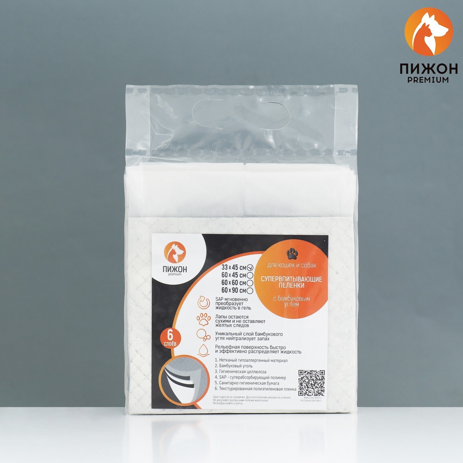 Пеленки угольные шестислойные гелевые для животных, 33 х 45 см, 5 шт