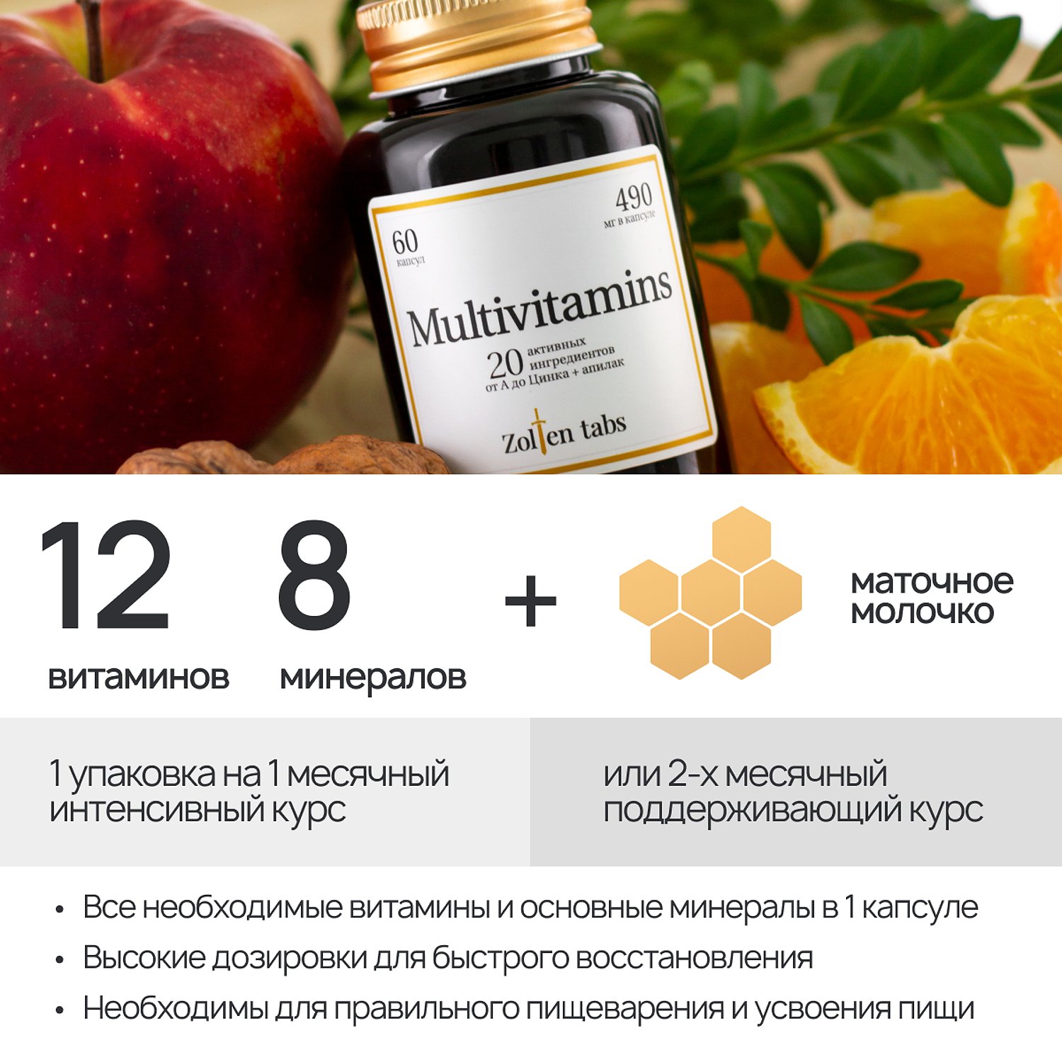 Мультивитаминный комплекс Zolten Tabs в капсулах для женщин мужчин и детей от A до Zn 60 капсул ZTMULTI