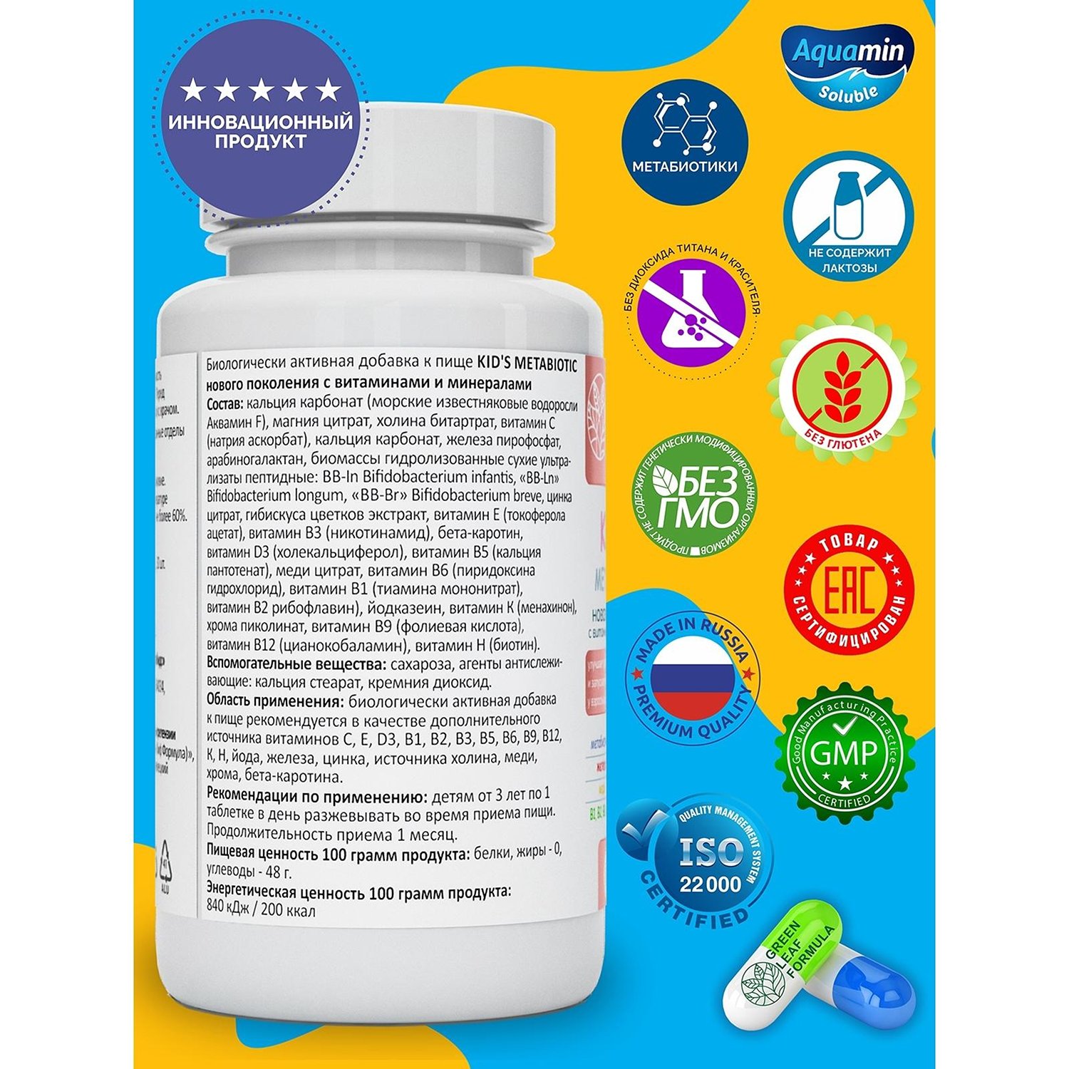 Детский метабиотик Green Leaf Formula витамины для детей от 3 лет 8 минералов и 14 витаминов 30 таблеток 110-137