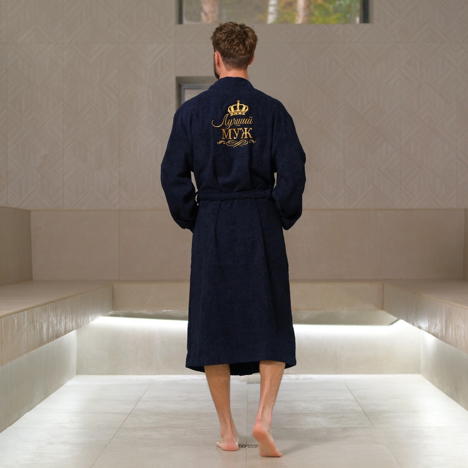 Халат махровый мужск."Лучший муж" р-р 56-58, синий