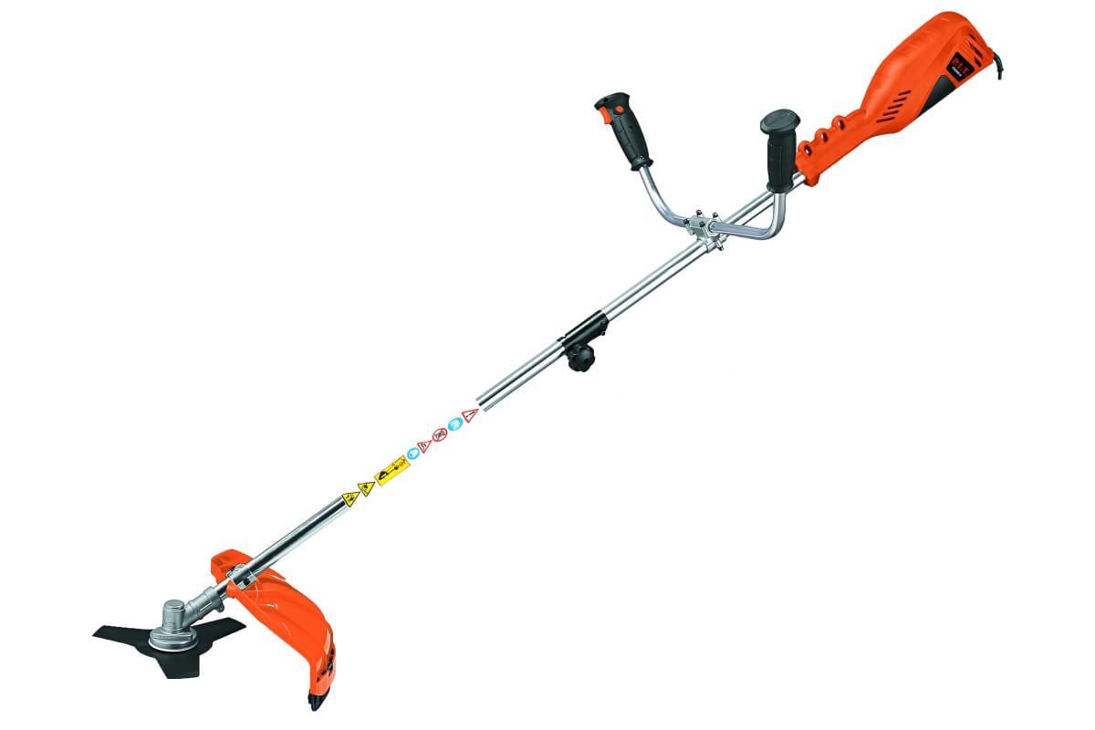 Электротриммер используется для покоса травы и мелкого кустарника. Обладает хорошо сбалансированным центром тяжести, что способствует более комфортному пользованию инструментом. В качестве режущего элемента используется триммерная леска или 3-лопастной нож. Малые габариты и разборный вал позволяют легко перевозить триммер в багажнике или в электричке.