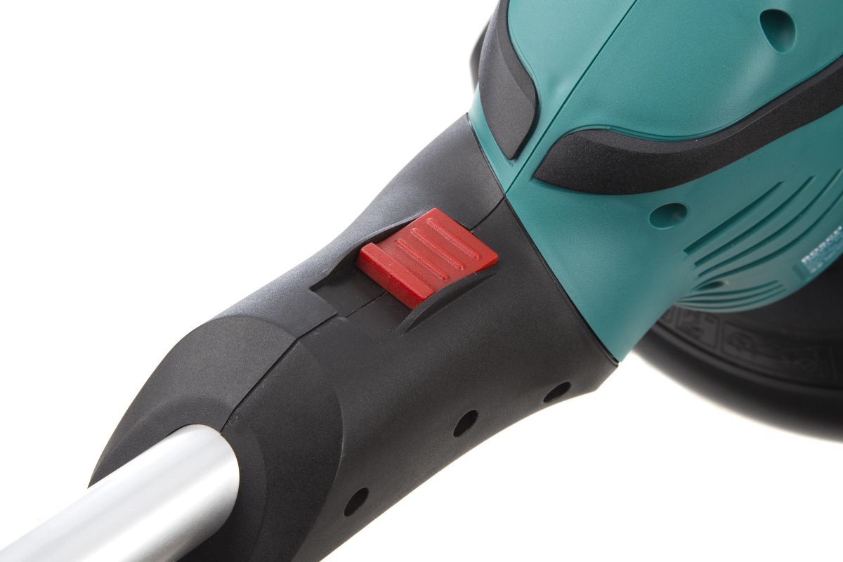 Работает с леской до 1,6 мм диаметром. Триммер предназначен для кошения свежей травы. За проход срезает полосу травы в 270 мм.