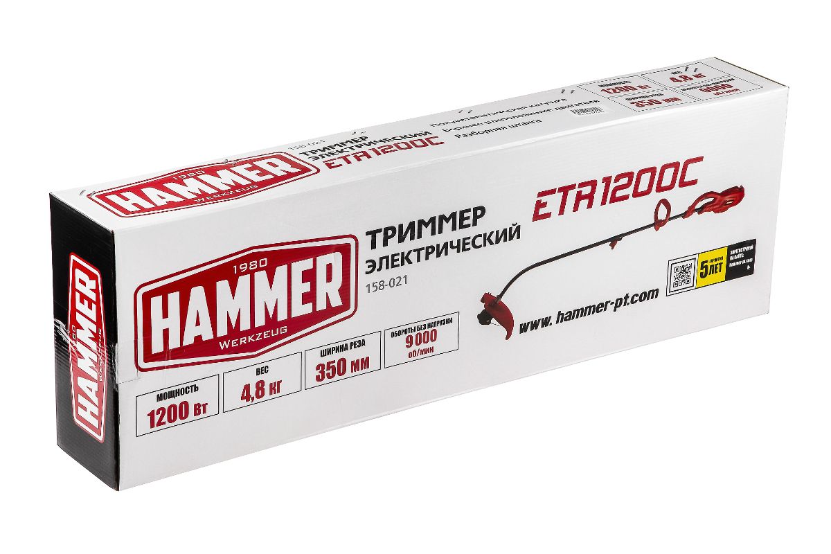 Триммер Hammer ETR1200C 1200Вт 9000об/мин леска 2мм изогнутая штанга