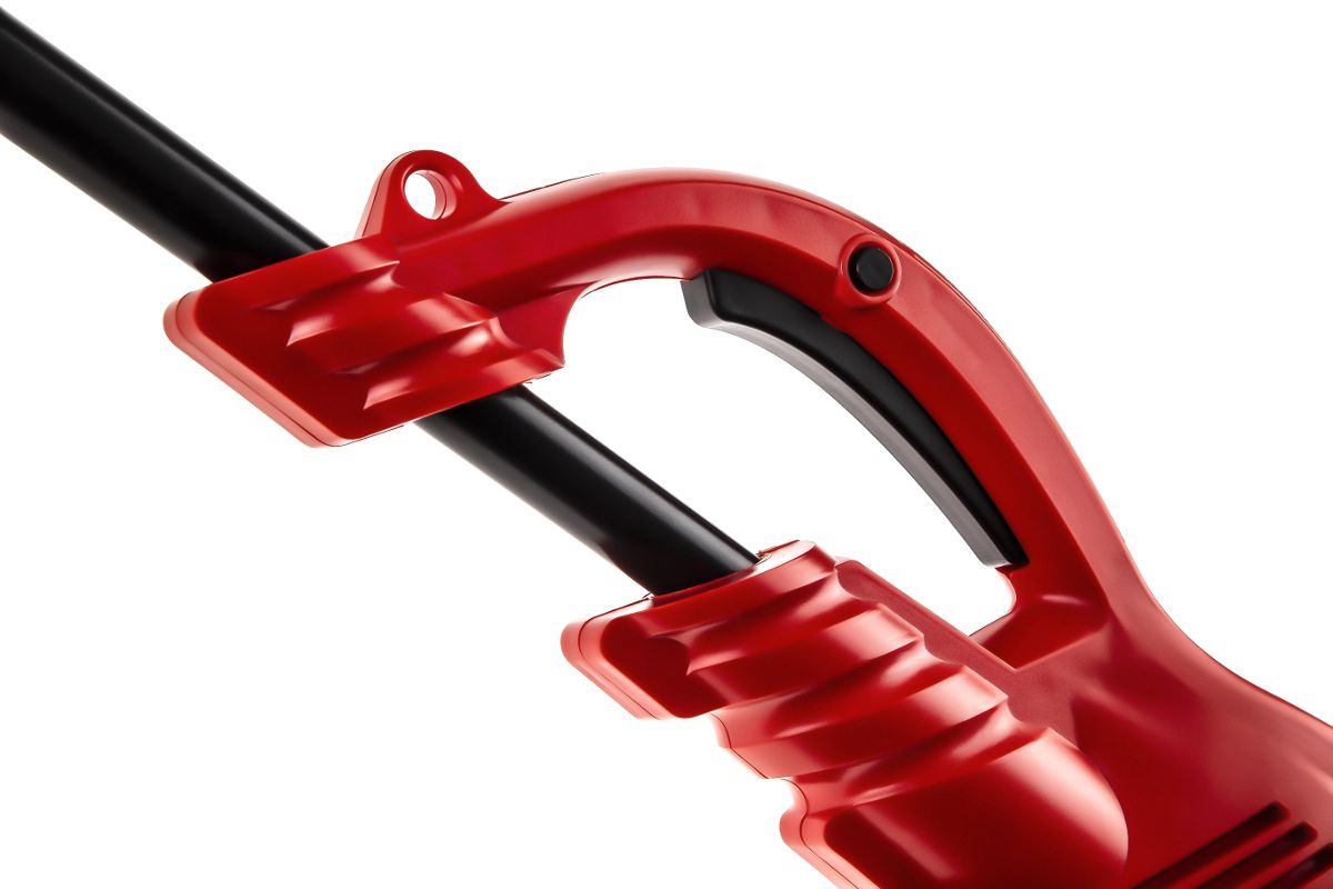 — Крюк для крепления кабеля питания на рукоятке — зацепившийся за куст шнур не отсоединится от триммера и не станет причиной остановки работы;