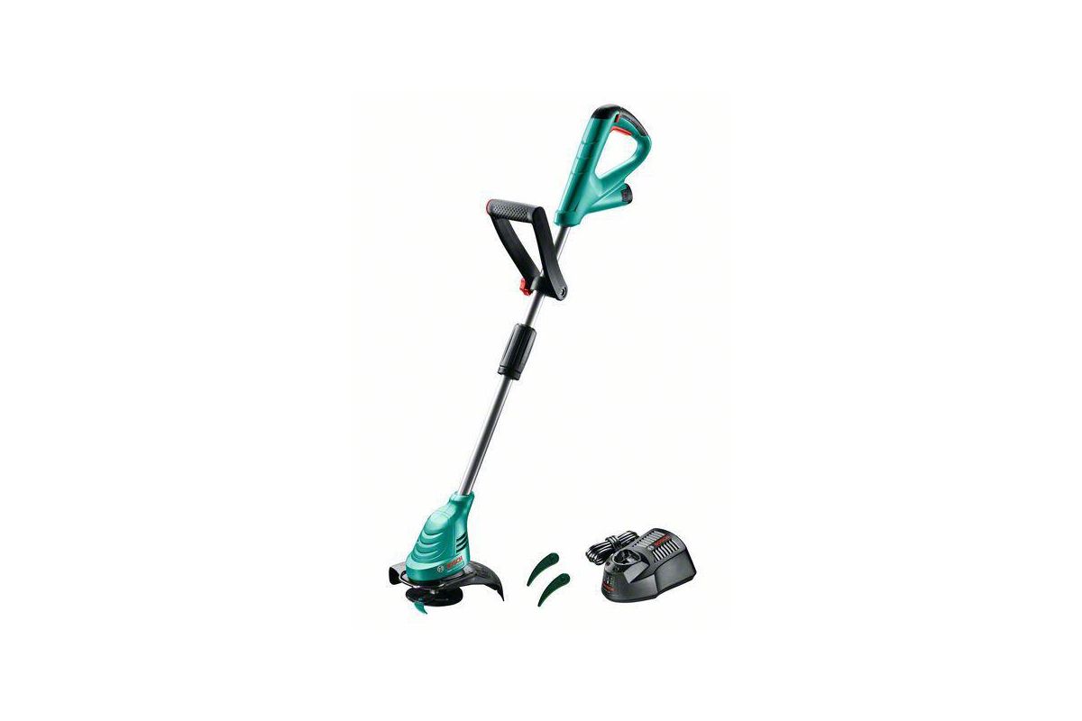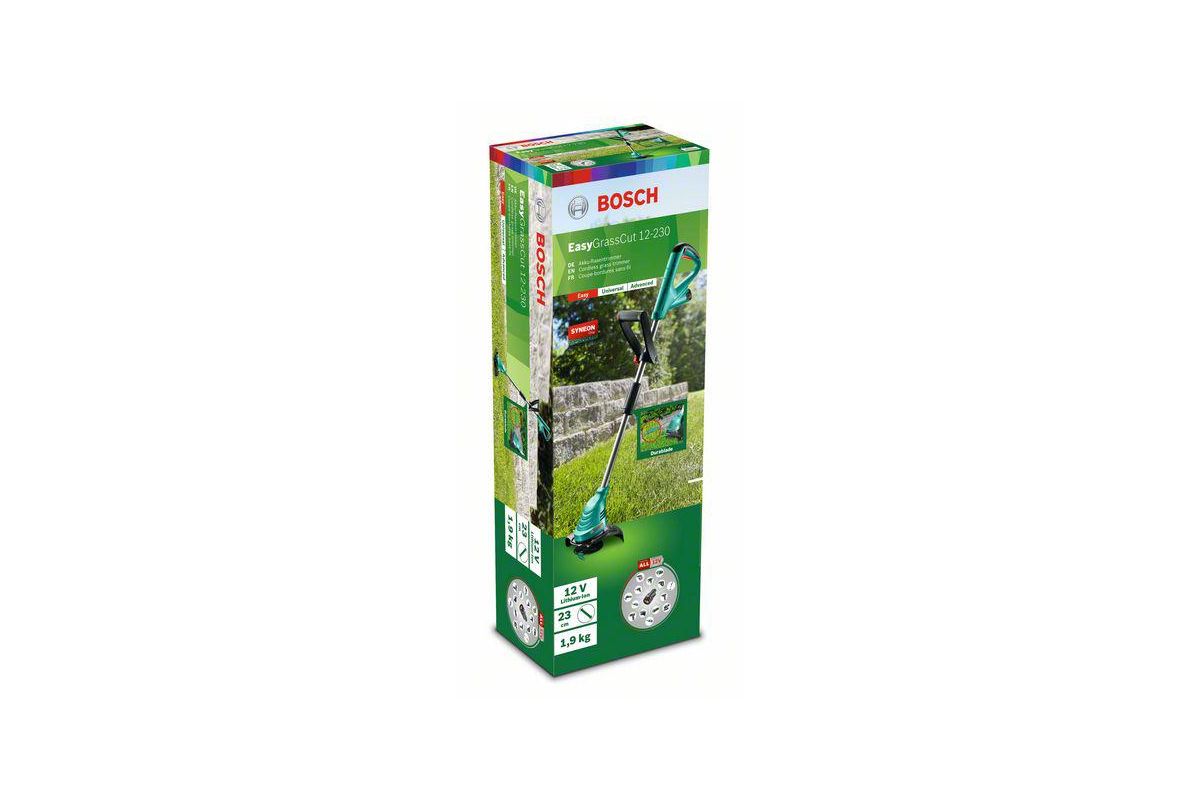 BOSCH EasyGrassCut 12-230 – аккумуляторный триммер для ухаживания за газоном на даче или загородном участке. Работает от литий-ионного 12 В аккумулятора. Зарядное устройство и аккумулятор входят в комплект. Косит траву ножом Durablade. Срезает полосу травы в 230 мм за один проход.