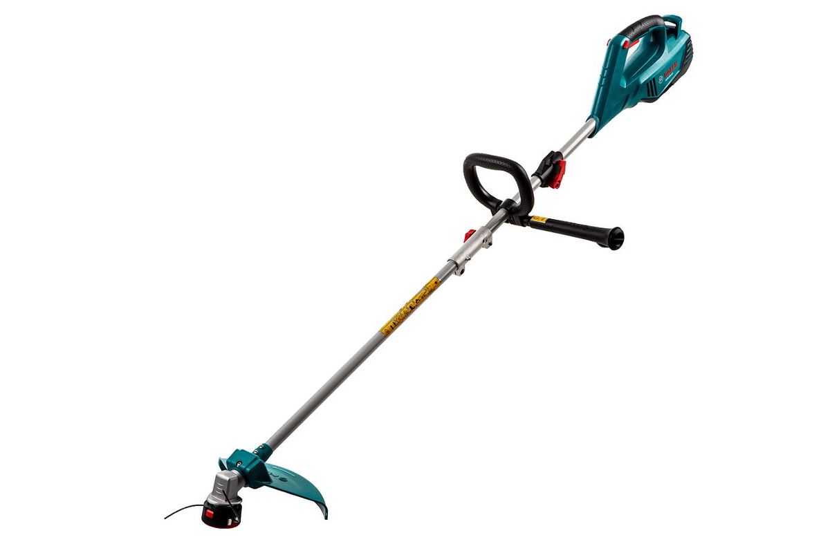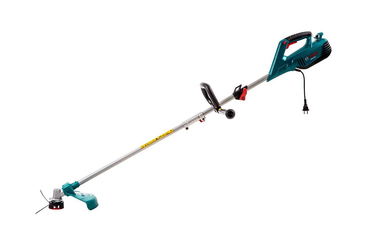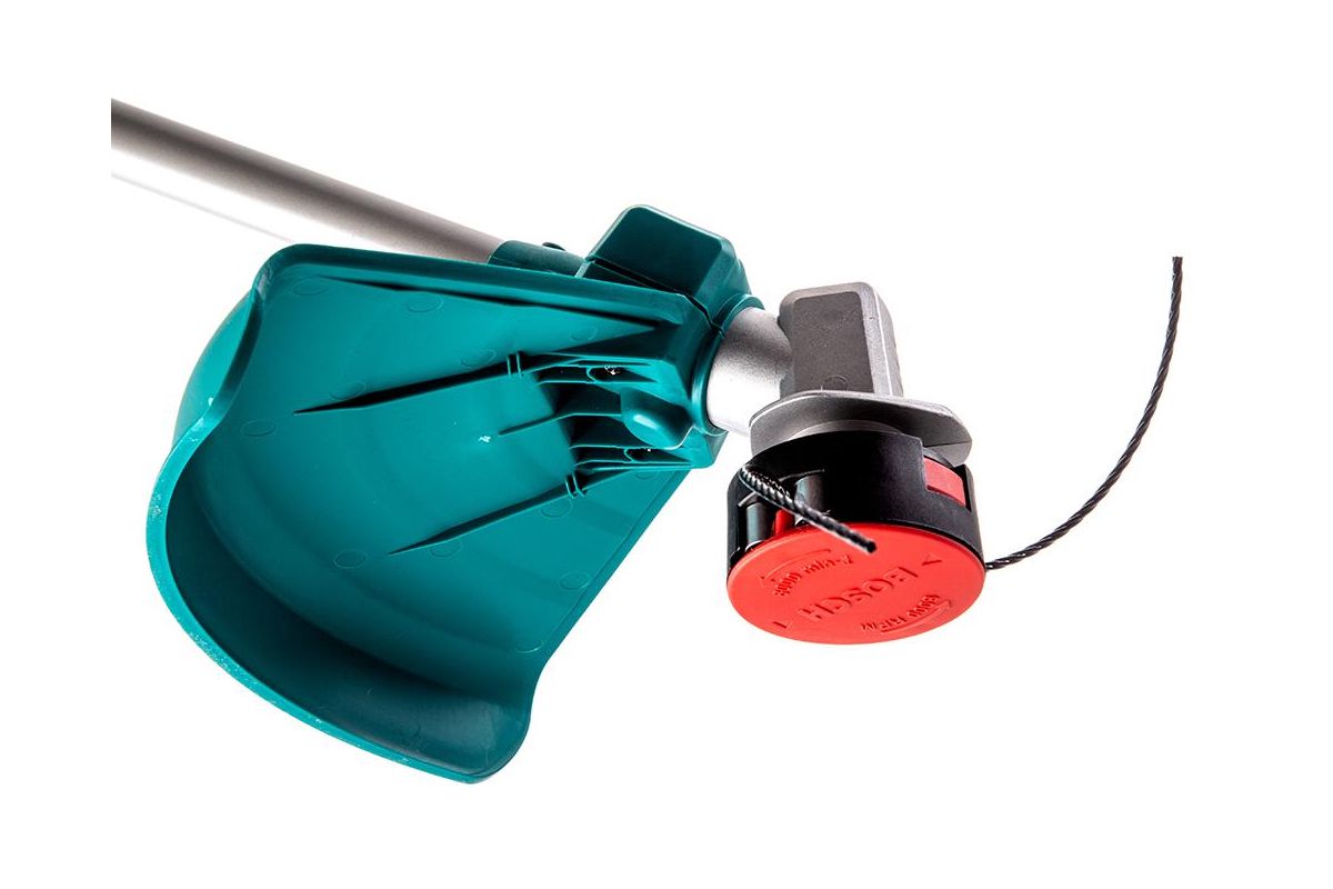 BOSCH AFS 23-37 – электрический триммер для стрижки травы на дачном участке. Работает от однофазных сетей 220 В. Косит лесками диаметром до 3,5 мм и ножами. За один проход с леской скашивает полосу травы до 37 см, с ножом – до 23 см. Двигатель на 950 Вт расположен сверху электрокосы.