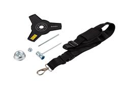Наплечный ремень снижает нагрузку на руки. Вес триммера равномерно распределяется по всему телу.