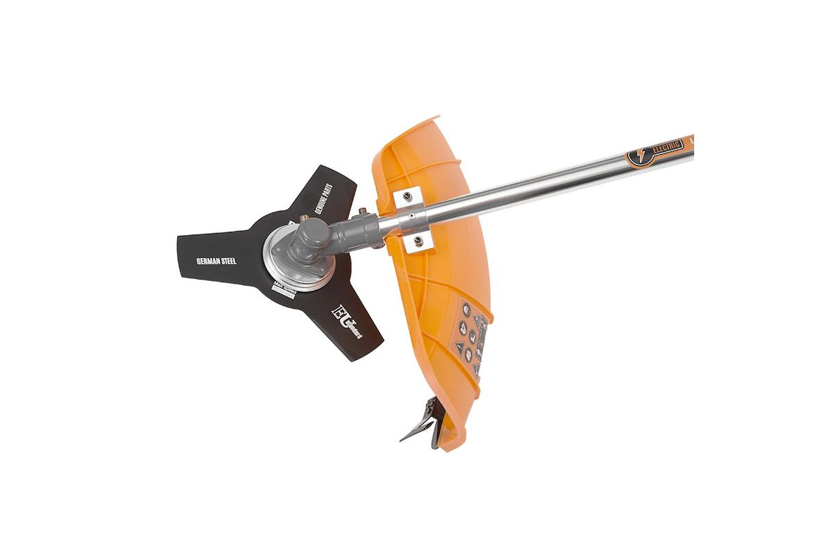 Разъемный алюминиевый вал позволяет без использования инструментов разобрать триммер для компактного хранения.