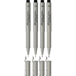Набор ручек капиллярных Faber-Castell Ecco Pigment черные, 4 штуки, 0,2/0,4/0,6/0,8 мм, с европодвесом