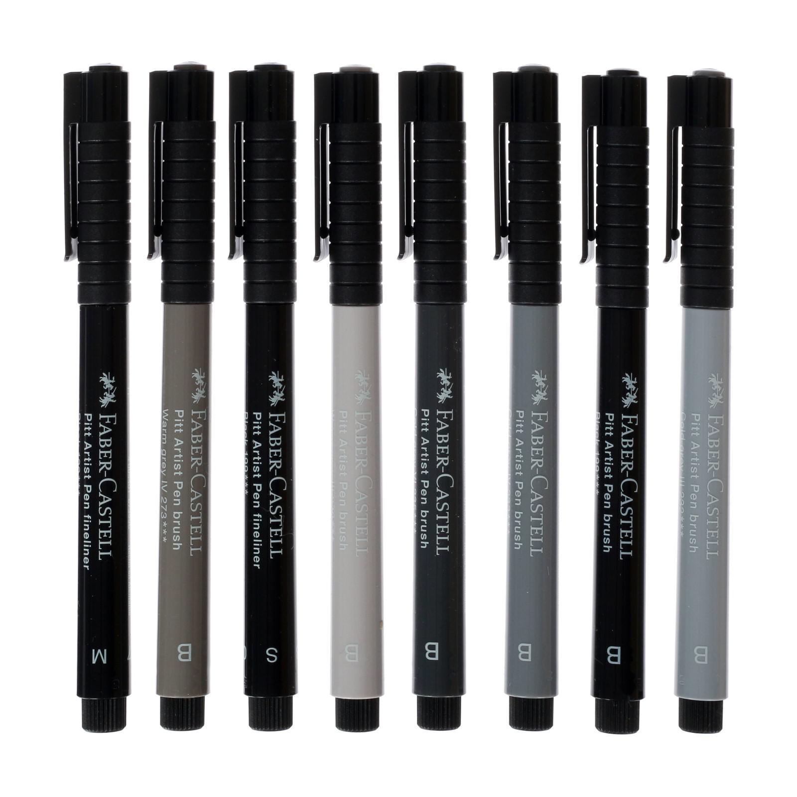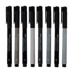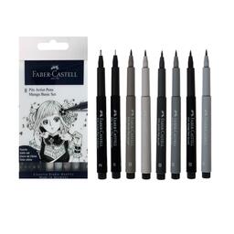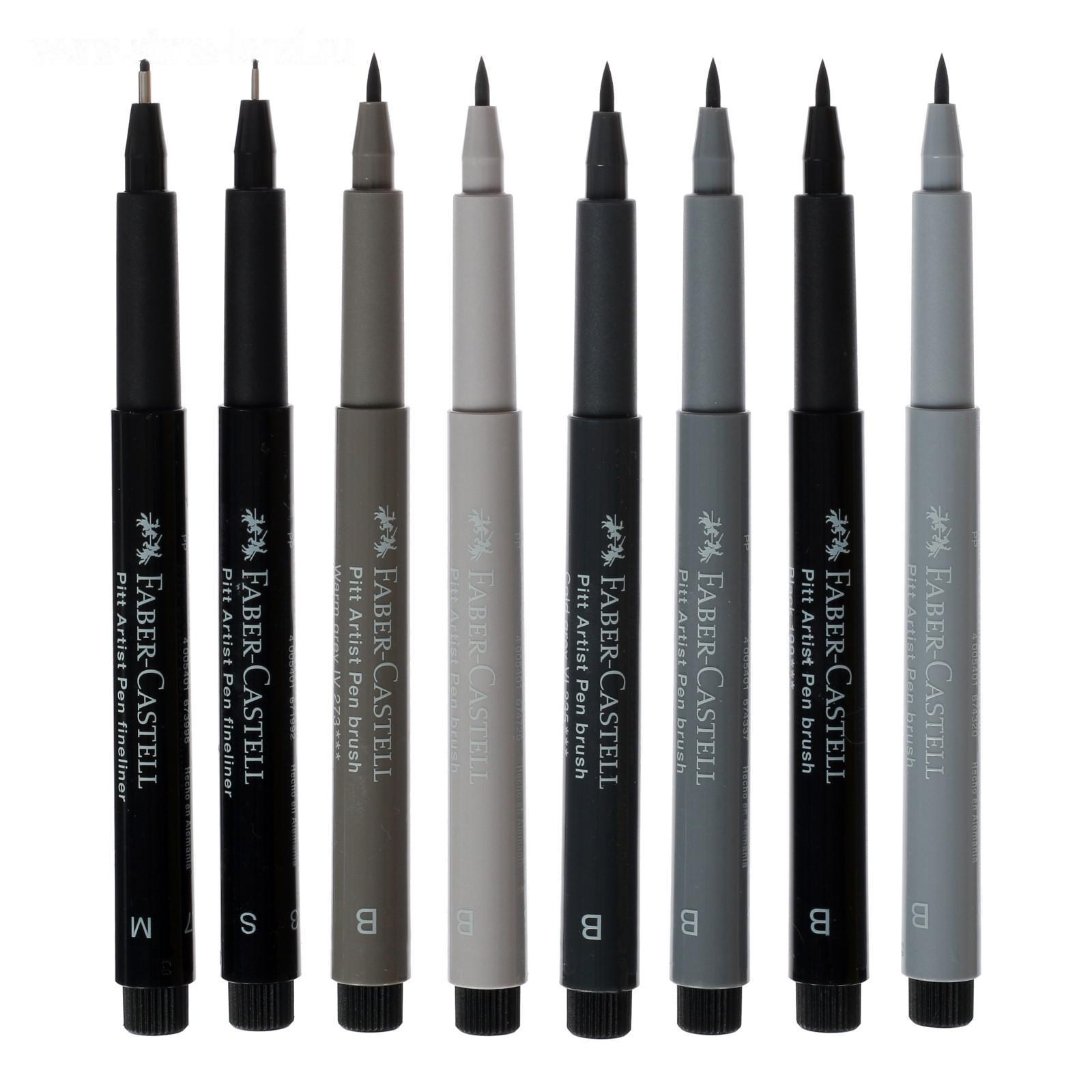 Набор ручек капиллярных 8 штук (кисть 6 цветов; линеры S, M) Faber-Castell PITT® Artist Pen Manga, цвет серый/черный