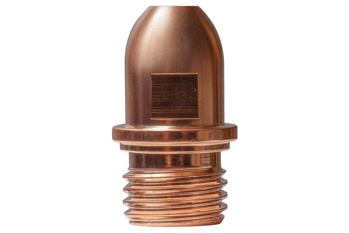 Катод - это внутренний элемент плазменной горелки и является расходным материалом. Катод проводит ток и поддерживает продолжительное горение дуги. Дежурная дуга возбуждается между соплом и катодом, в процессе переходя в основную плазмообразующую дугу.