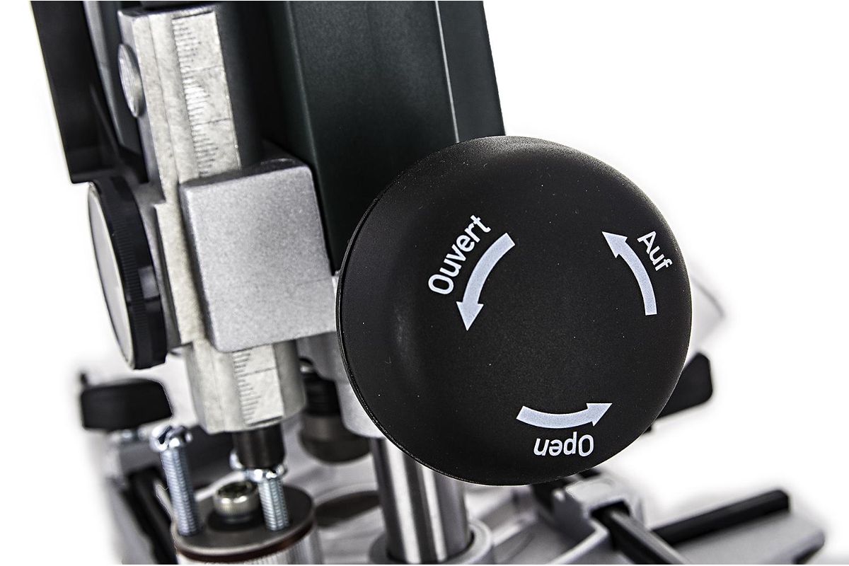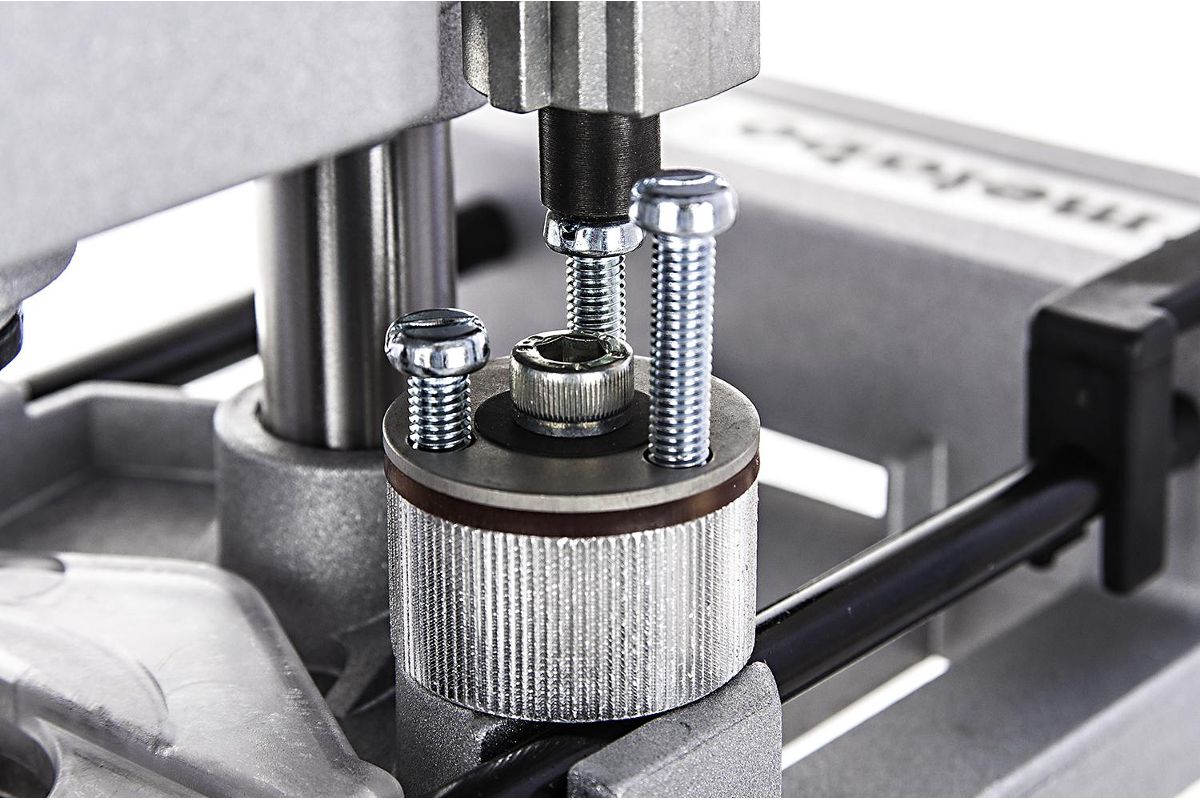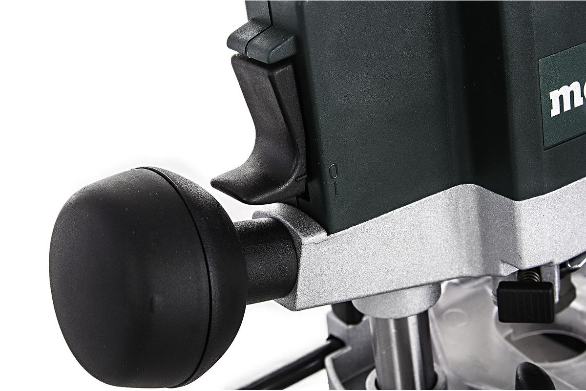 Для того чтобы замена фрез происходила легко и без риска травмирования, фрезер Metabo OFE 1229 Signal оснастили блокирующимся шпинделем. Включается и выключается этот инструмент без необходимости отпускать его рукоятки. Нужная скорость вращения устанавливается с помощью регулировочного колесика. Также эта модель практична тем, что имеет угольные щетки, отключающиеся самостоятельно. Кроме того, к инструменту можно будет подключать устройства для удаления пыли.