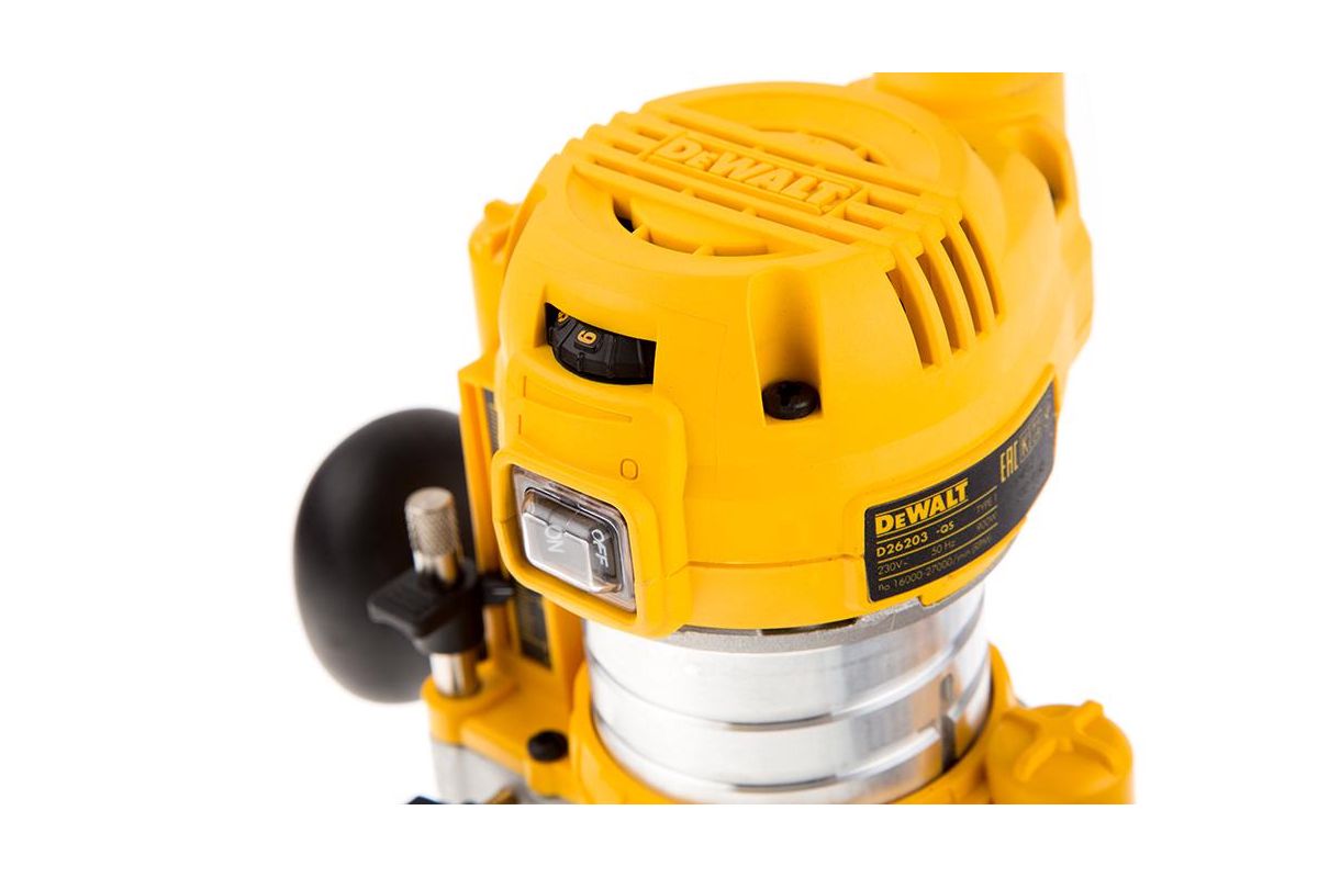 Фрезер DEWALT D26203QS позволяет делать пазы различной глубины. Используется для работы с пластиком, твердой и мягкой древесиной. Мощность 900 Вт. Макс. обороты 27 000 об/мин. Пять фиксированных положений глубины фрезерования.