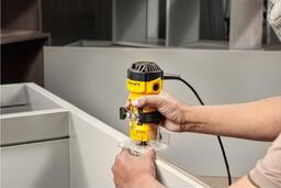 Окантовочный (кромочный) фрезер предназначен для выполнения широкого спектра работ по дереву, алюминию и композитным материалам: от окантовки и снятия фасок до выборки пазов и копирования. Выключатель в специальной нише предотвращает случайный запуск или остановку инструмента во время работы. Окошко отсека щеточного узла обеспечивает быструю замену угольных щеток. Предусмотрена бесключевая регулировка глубины фрезерования.