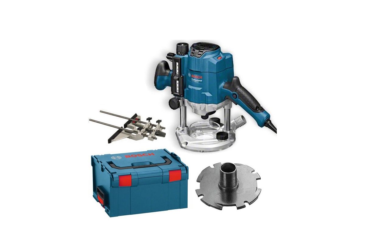 Система Constant-Electronic, блокировка шпинделя, встроенная система пылеудаления, прозрачная опорная пластина для обзора заготовки, эргономичный дизайн ручки. Переходник для копировальных втулок, параллельный упор с точной регулировкой, рожковый ключ на 19 мм, копировальная втулка 17 мм, Кейс L-BOXX