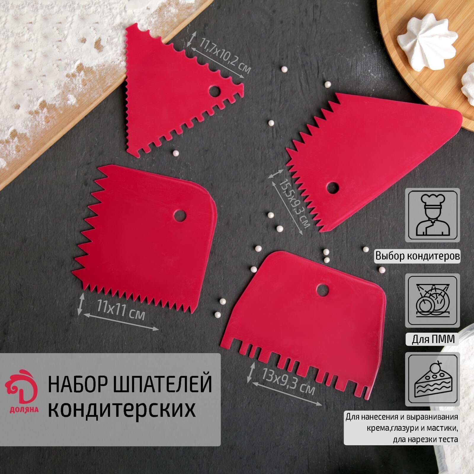Набор шпателей кондитерских Доляна, 4 предмета, 11,7×10,2 см, 15,5×9,3 см, 11×11 см, 13×9,3 см, цвет МИКС