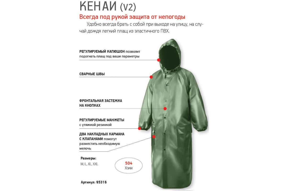 Плащ ALASKA Кенаи v.2 Хаки XL легкий из пвх регулируемые манжеты и капюшон